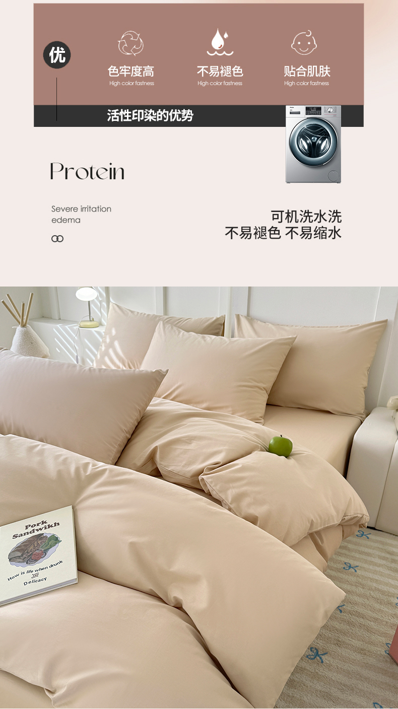 (总)佰亿莱 2024新款全棉无印风水洗棉学生宿舍三件套四件套 图片二,豆粉+仙女粉,格调蓝+摩卡灰,格调紫+仙女粉,卡其+咖啡,摩卡灰,摩卡灰+卡其,摩卡灰+奶咖,奶白+卡其,青草绿+奶黄,天空蓝+卡其,香草绿+格调紫,芝士蓝+奶黄