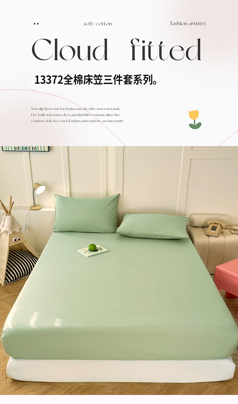 佰亿莱 2025新款简约舒适全棉单品系列单床笠 豆绿色