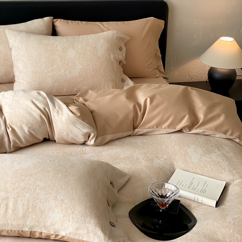 商品名称:旷野 2025新款全棉色织提花四件套 雾凇-奶咖