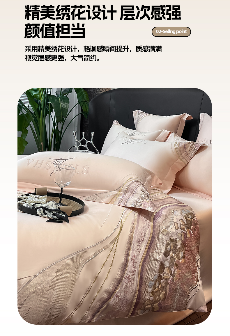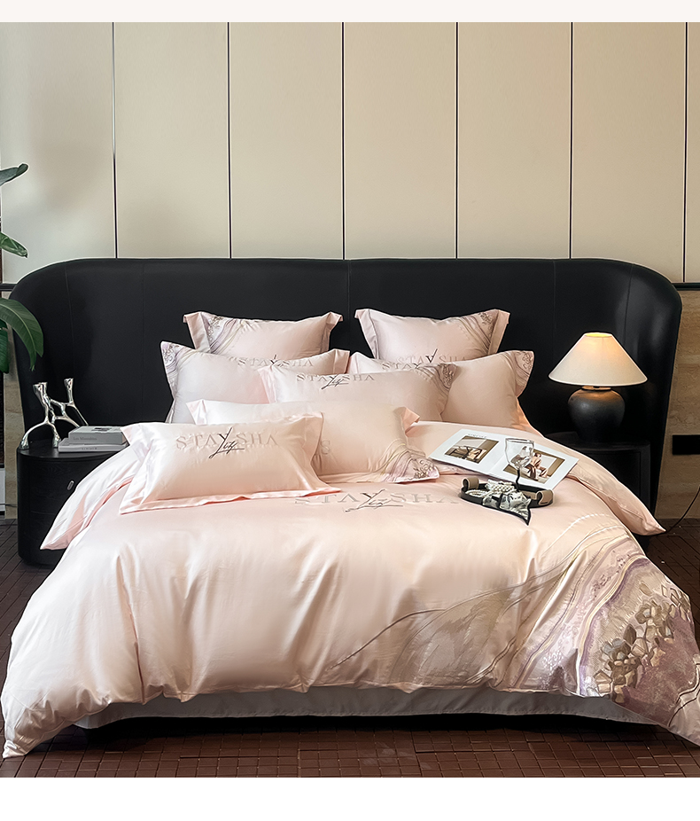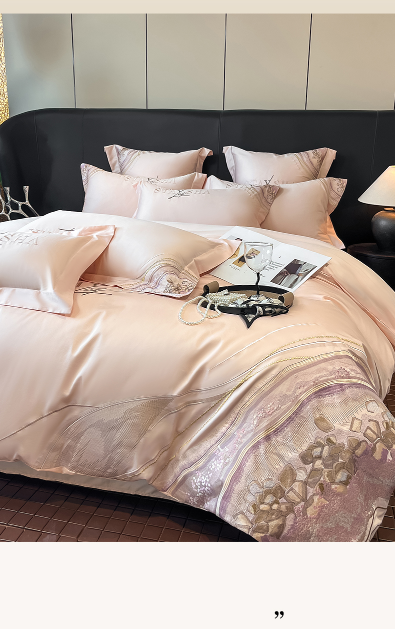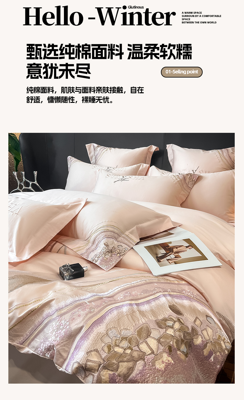 (总)博纳家纺 2025新款镂空大宽边拼角高级简奢款亲肤棉四件套-山水提花,繁星蓝,粉玉,高级灰,香槟,象牙白