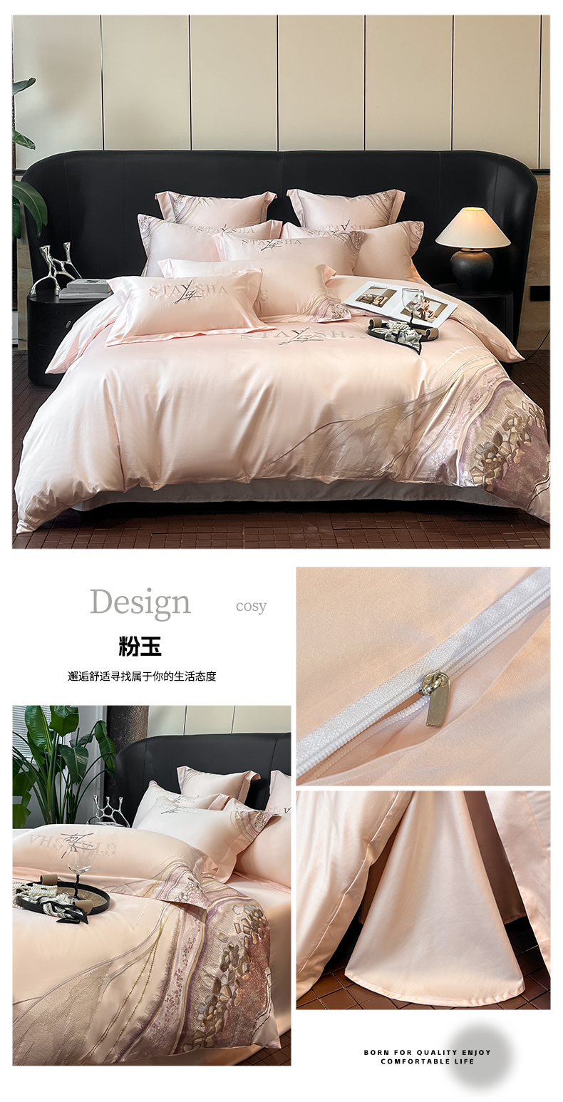 商品名称:博纳家纺 2025新款纯棉绣花四件套—琉璃 粉玉