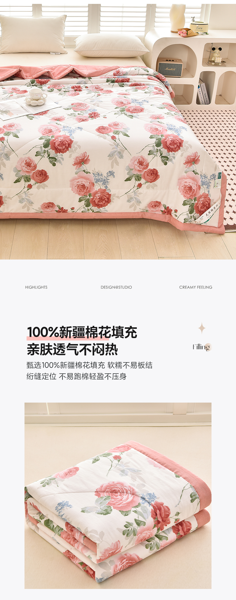 羽梦家纺2025新款新疆棉花全棉夏凉被 锦上添花