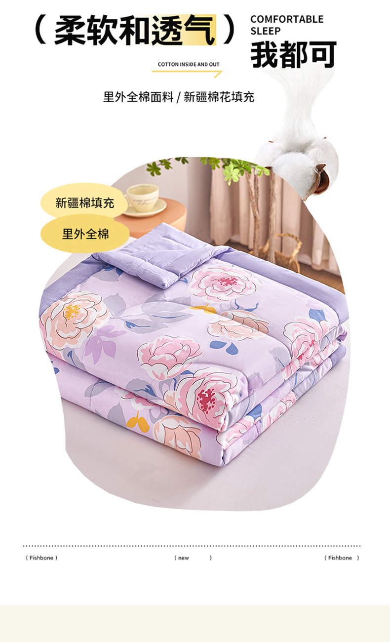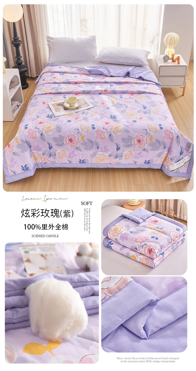 羽梦家纺2025新款新疆棉花全棉夏凉被 炫彩玫瑰紫