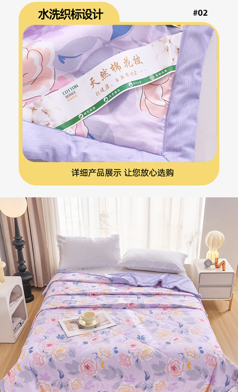 商品名称:羽梦家纺2025新款新疆棉花全棉夏凉被 炫彩玫瑰紫