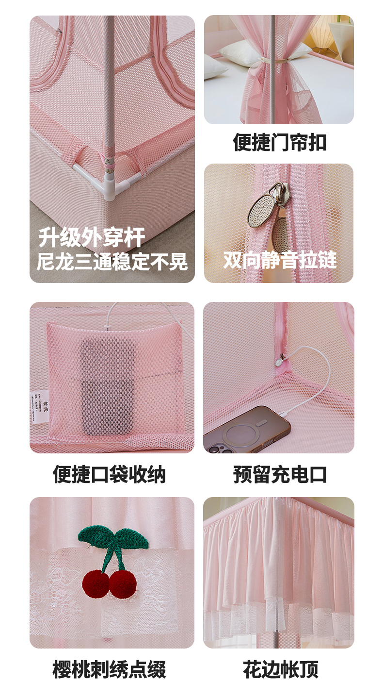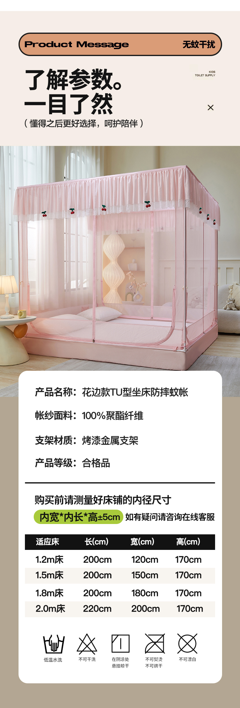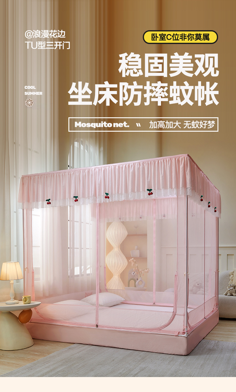 当前位置: 91家纺网 > 商品网购 > 床上用品 > 蚊帐 > 坐床式蚊帐 > 青竹苑2025新款花边款床笠底防摔坐床蚊帐-樱桃 樱桃-樱花粉