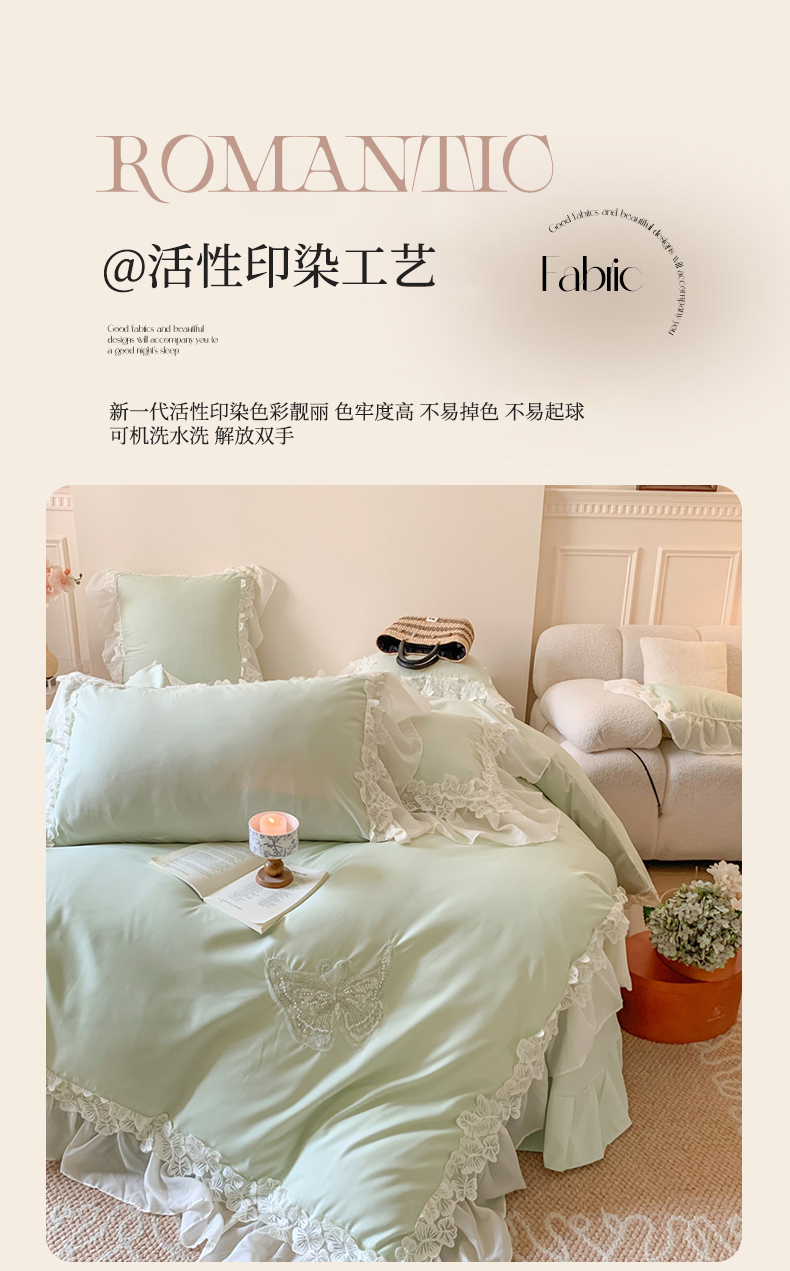 当前位置: 91家纺网 > 商品网购 > 床品套件 > 四件套 > 其它四件套 > 吾欢心2025新款糯小棉立体蝴蝶花边套件-蝶恋花系列 蝶恋花绿