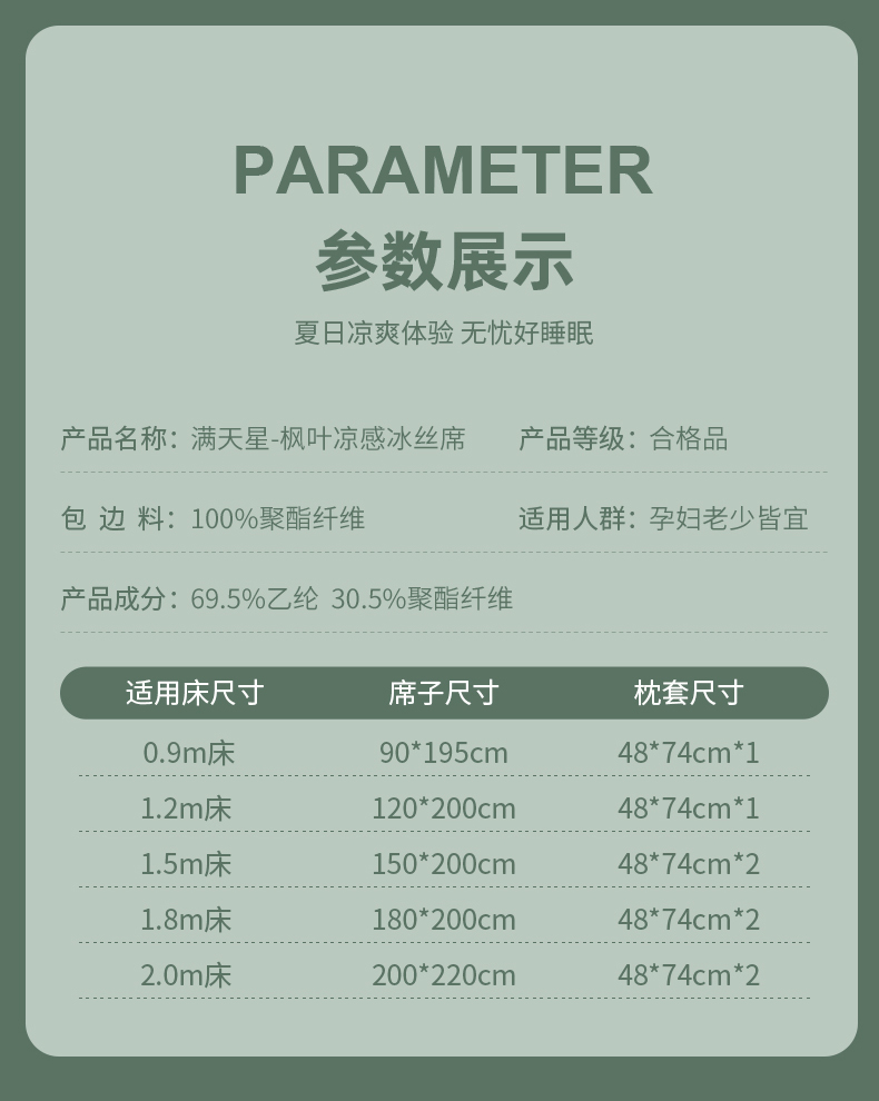 商品名称:小牛席业2025新款A类满天星枫叶凉感冰丝席(凉感系列)凉席藤席冰藤席冰丝席竹席草席空调席乳胶席豆豆席 灰色