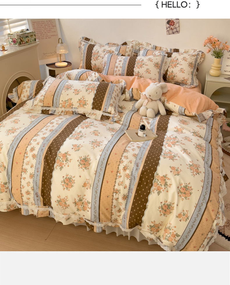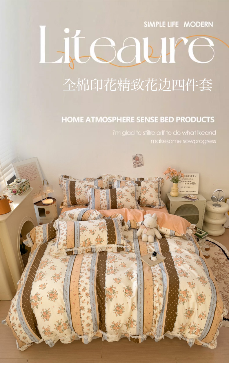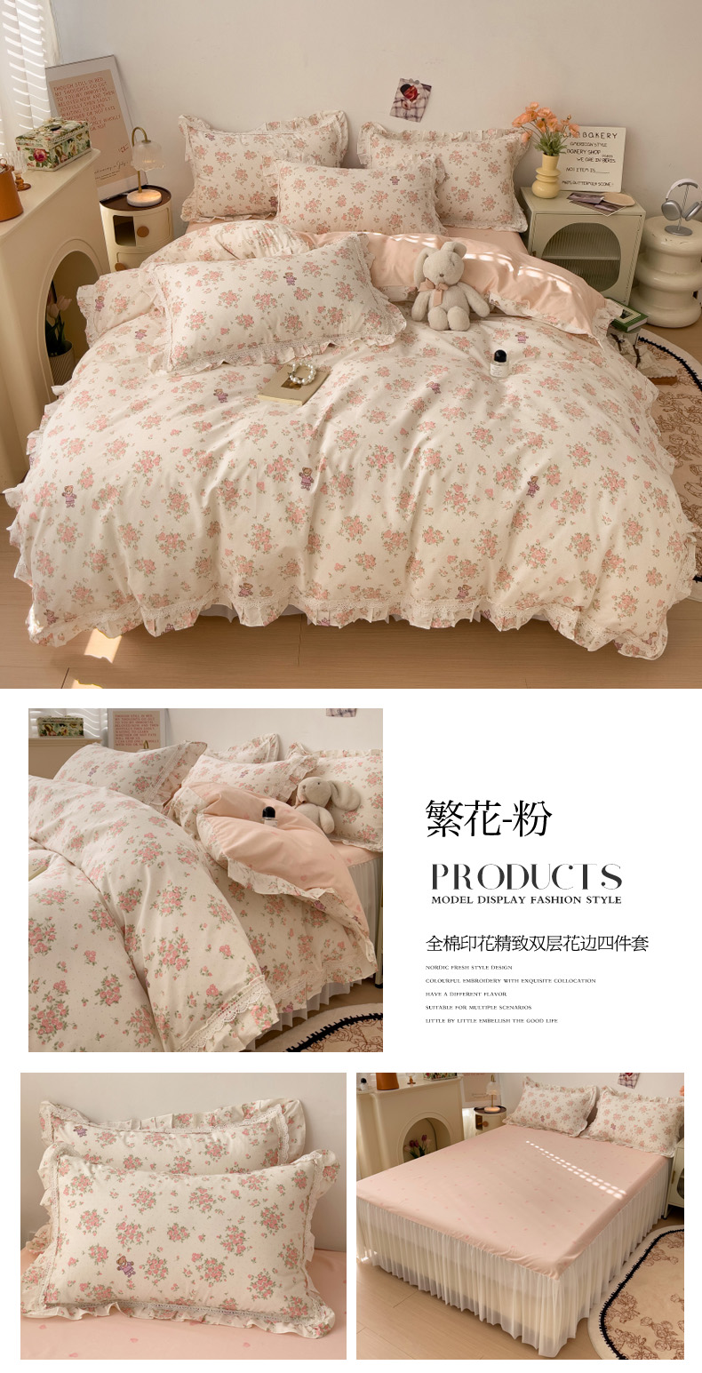当前位置: 91家纺网 > 商品网购 > 床品套件 > 四件套 > 水洗棉四件套 > 麦朵家居 2025新款13372花边全棉长绒棉床裙款四件套双层纱全棉水洗棉套件--繁花系列 小樱桃