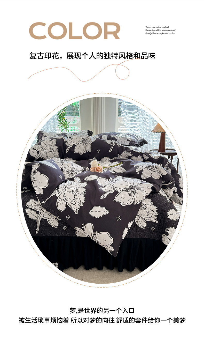 当前位置: 91家纺网 > 商品网购 > 床品套件 > 四件套 > 全棉普通四件套 > 金盛皇朝家纺 2025新款法式赫本风大花卉床盖四件套 和合如意