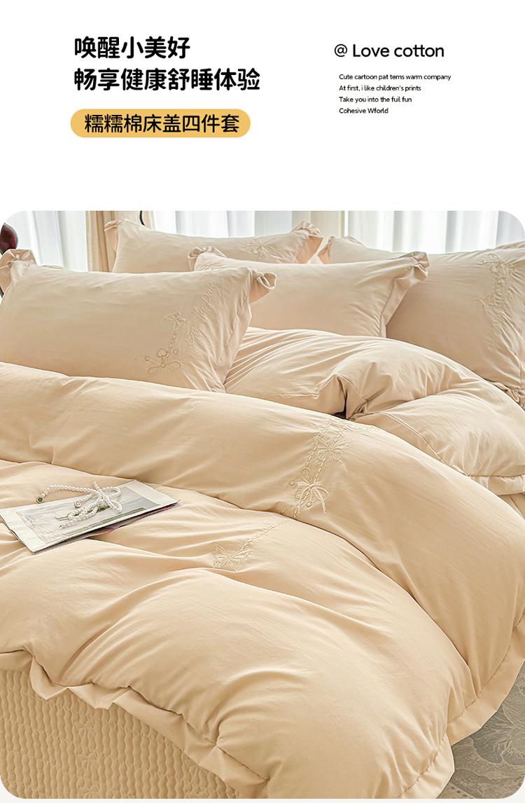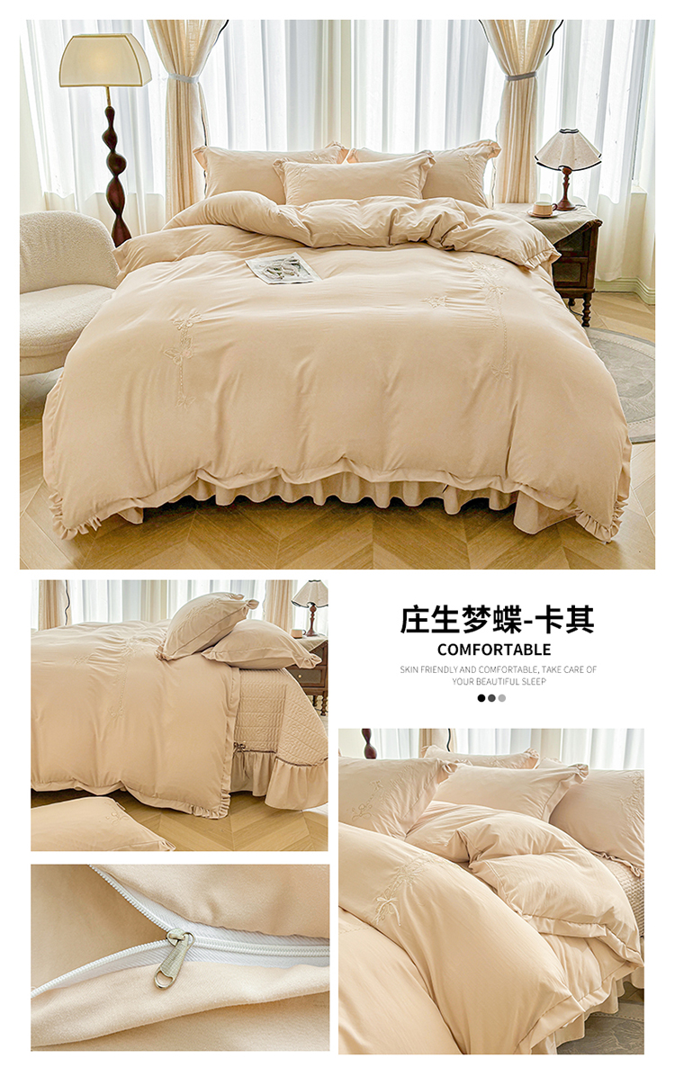 商品名称:恒爱家纺 2025新款糯糯棉庄生梦蝶被套四件套 庄生梦蝶-卡其