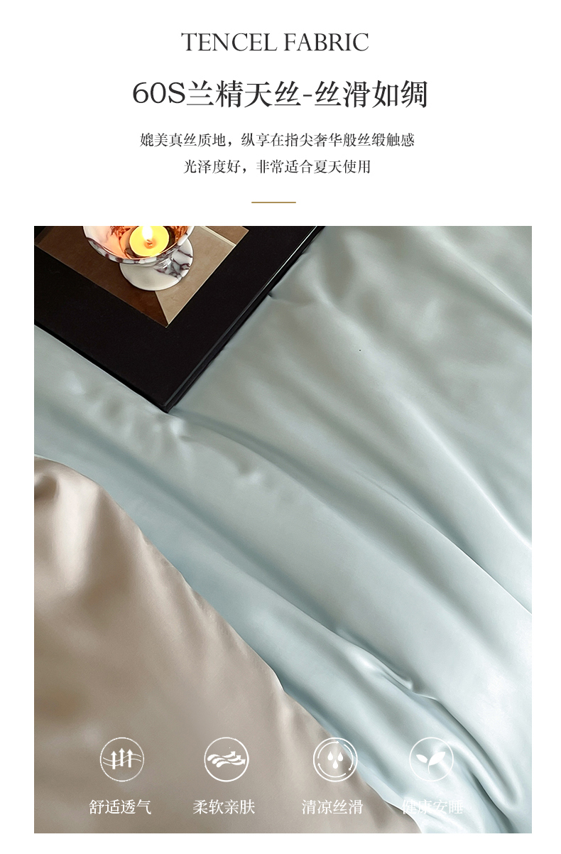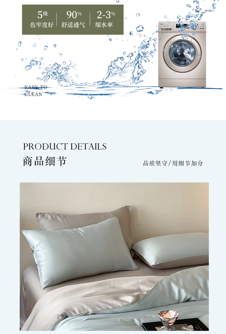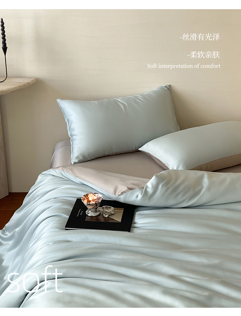 当前位置: 91家纺网 > 商品网购 > 床品套件 > 四件套 > 莱赛尔四件套 > 沐晴家纺 2025春夏新款纯色兰精天丝四件套双拼单被套单床笠床单枕套映霜蓝-霜华银