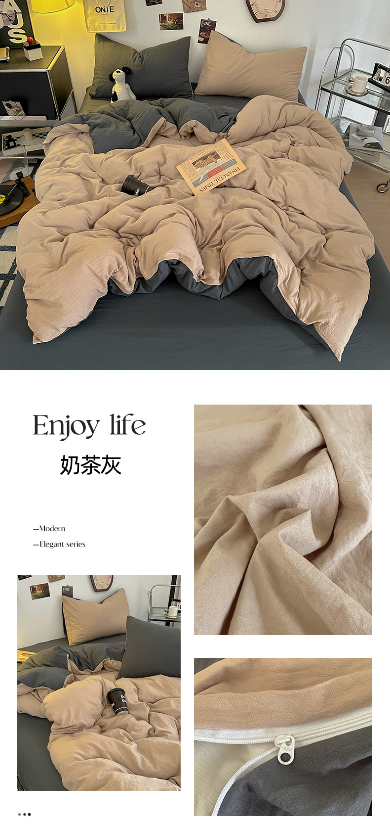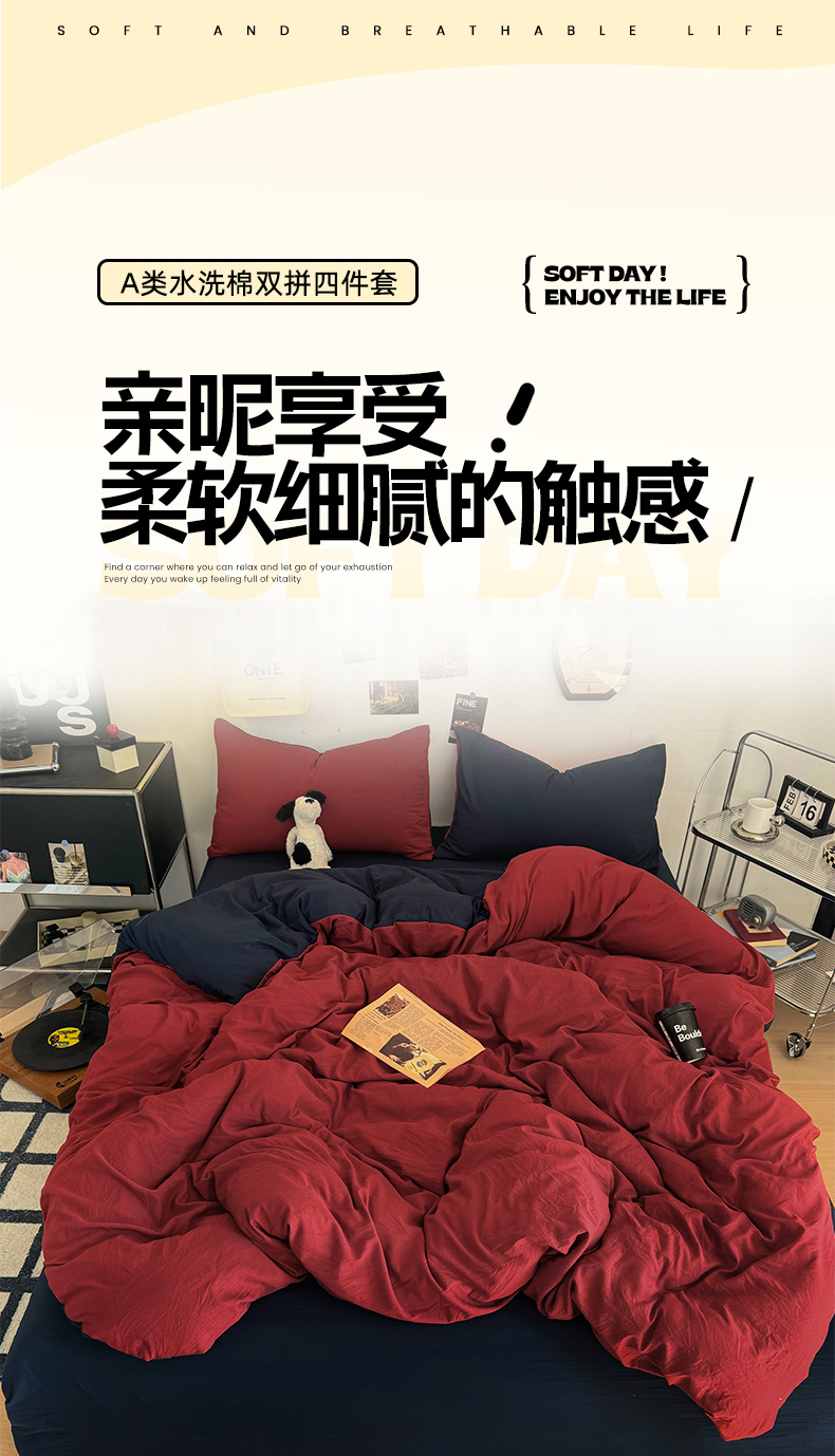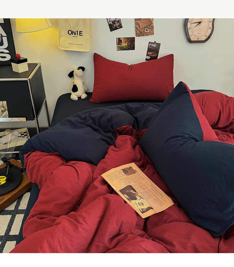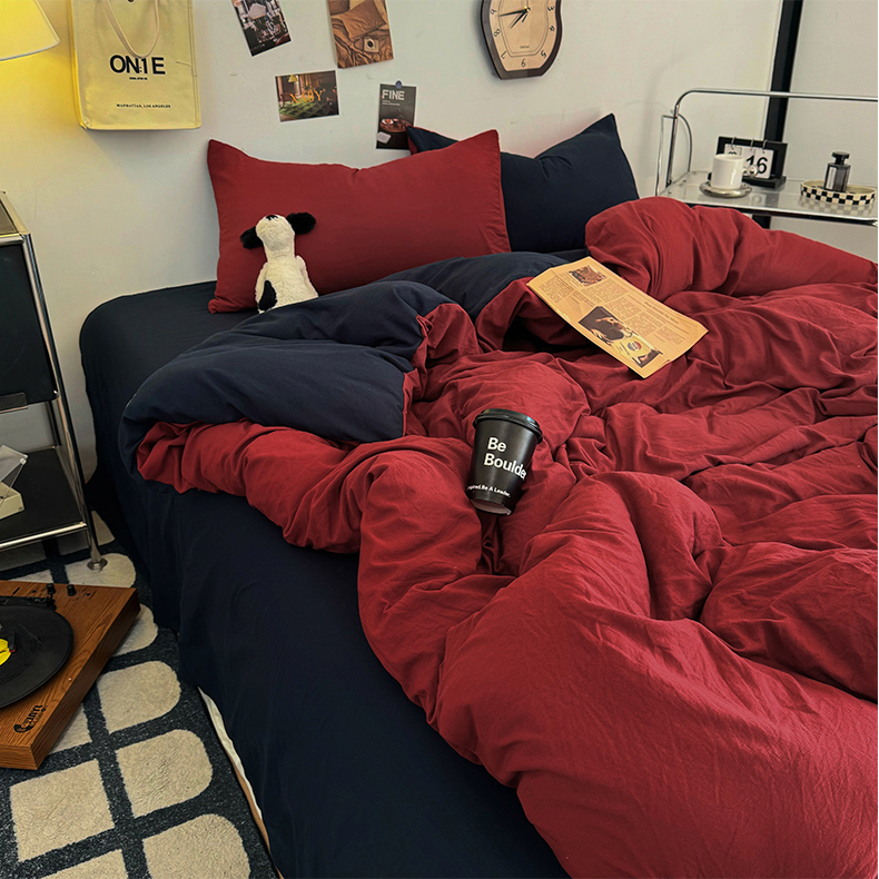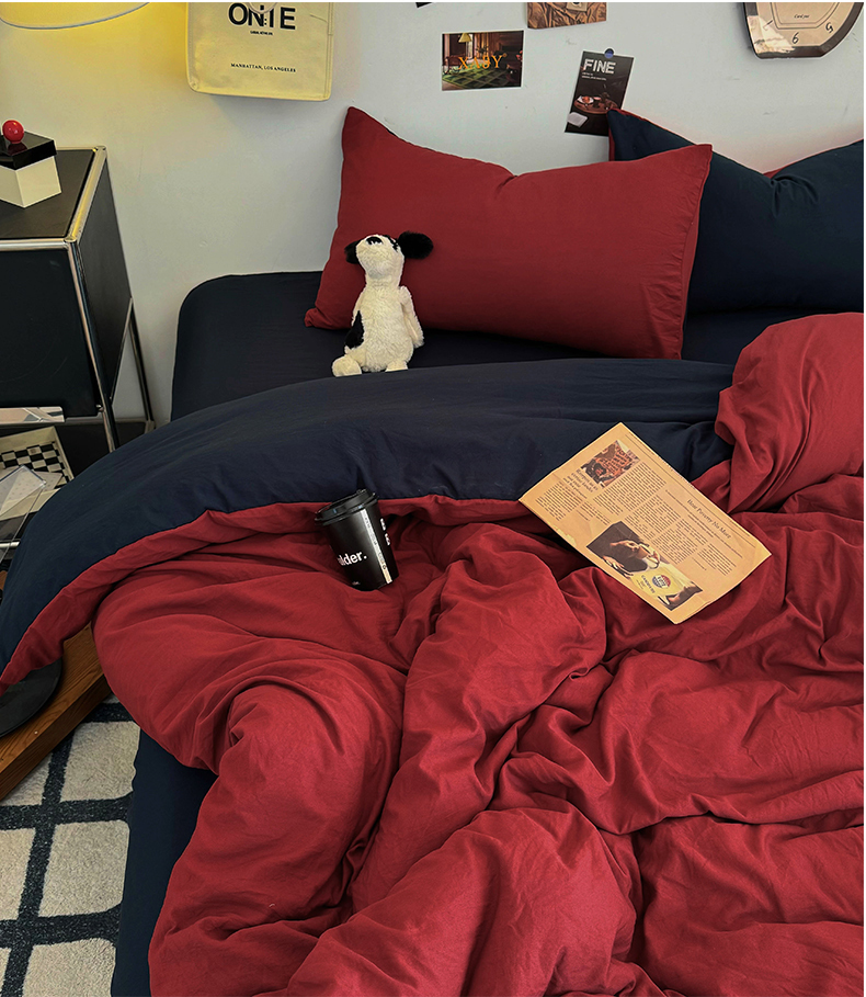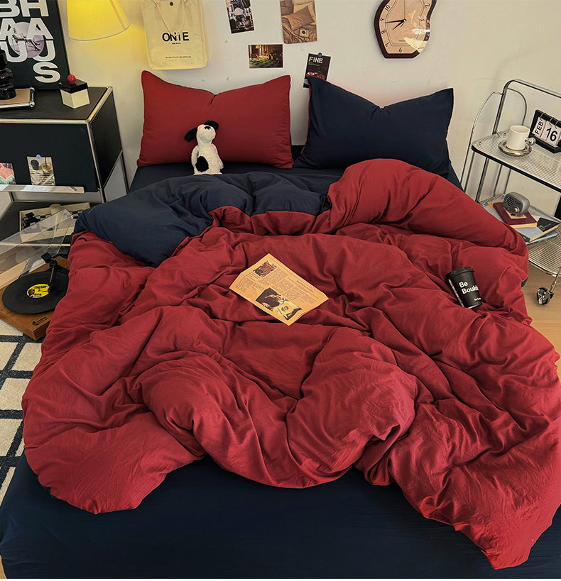 (总)耀达家居 2025新款水洗棉双拼夏被四件套,安可拉红➕藏蓝,高级灰➕烟灰,海盐蓝➕高级灰,奶茶➕高级灰,奶茶➕咖啡,燕麦➕可可