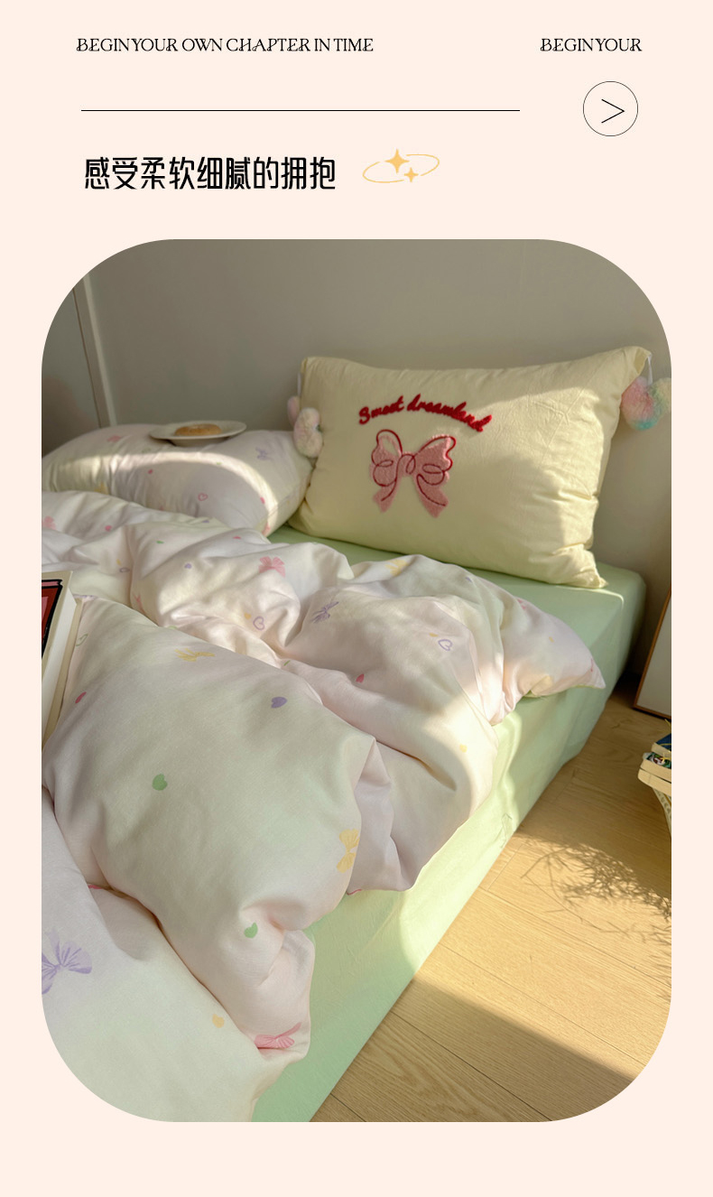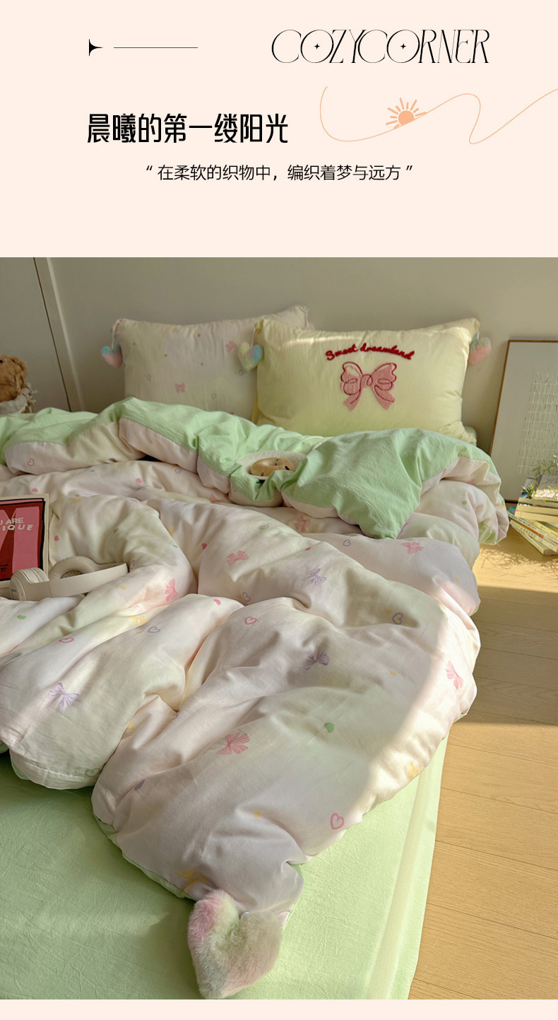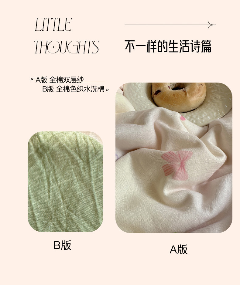 商品名称:丽涵 2025年春夏新品全棉双层纱印花毛巾绣四件套 运染少女心