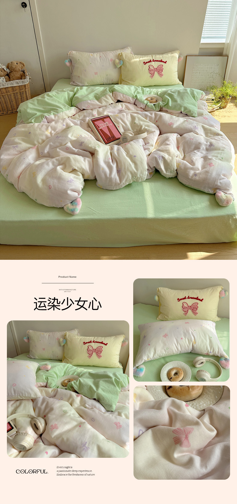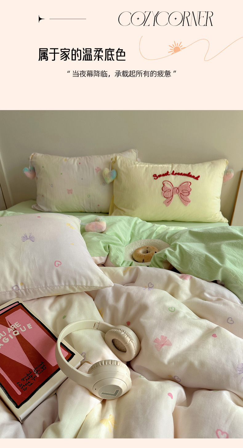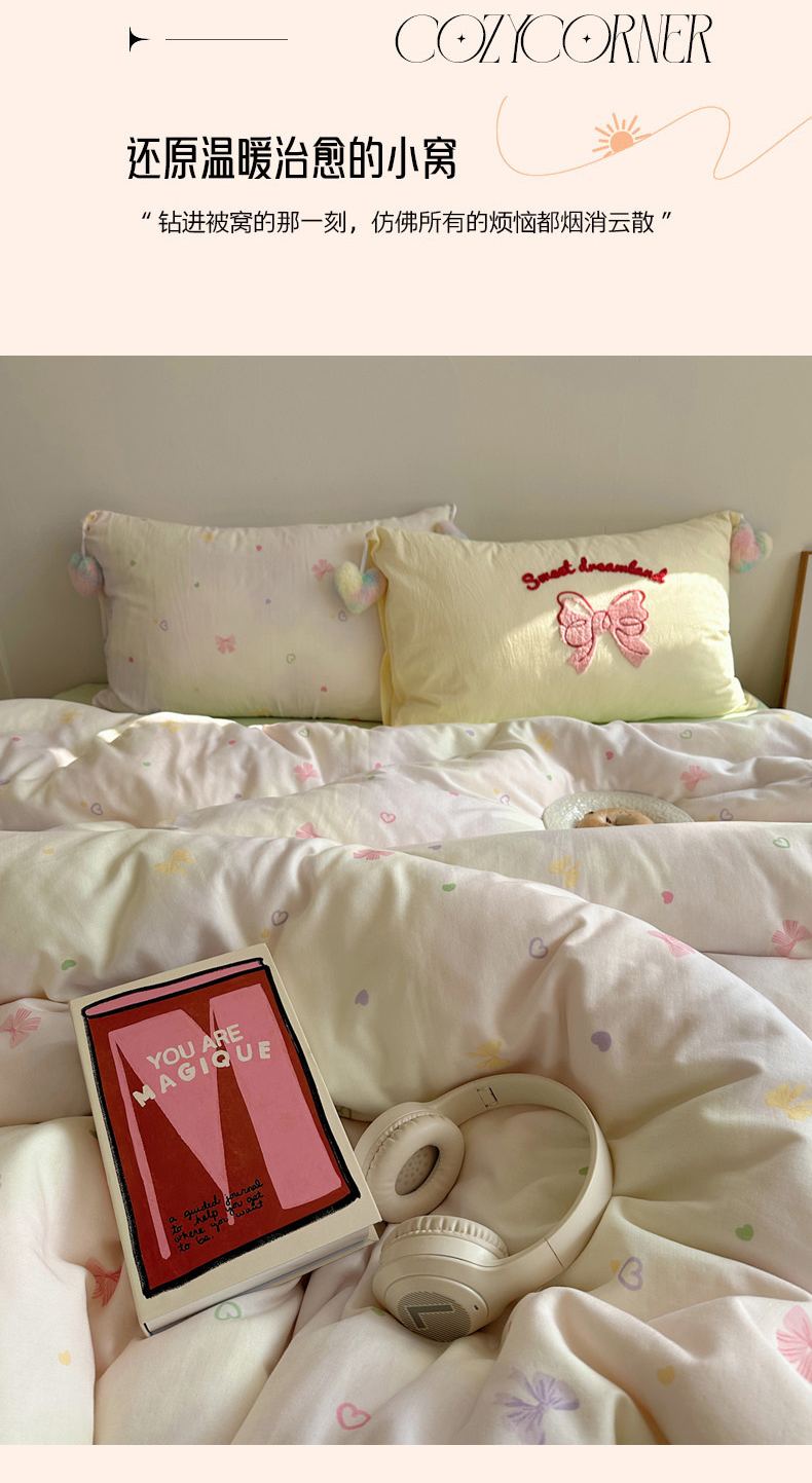 商品名称:丽涵 2025年春夏新品全棉双层纱印花毛巾绣四件套 运染少女心