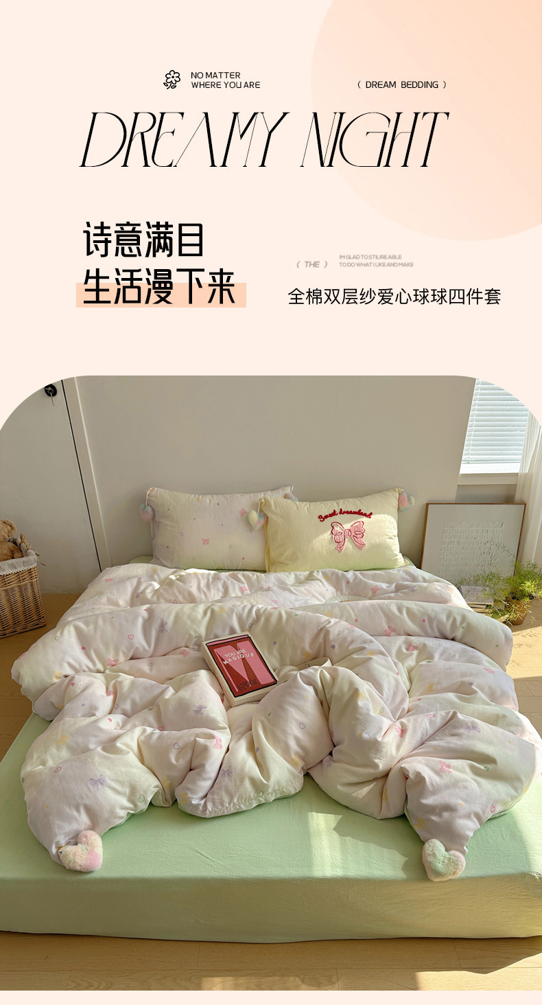 (总)丽涵 2025年春夏新品全棉双层纱印花毛巾绣四件套,爱心豹纹,焕彩星空,俏皮波点,少女日记,运染少女心