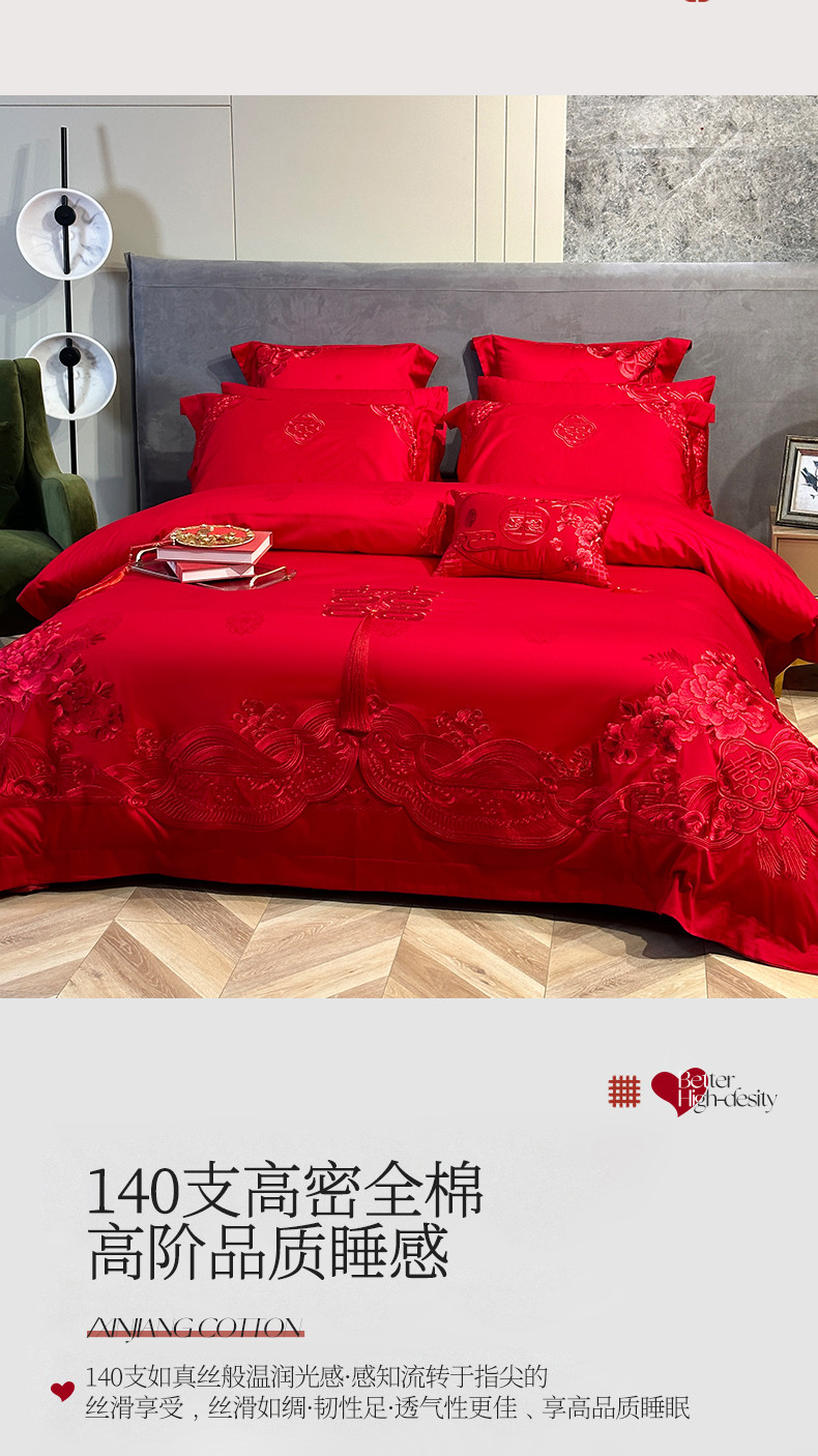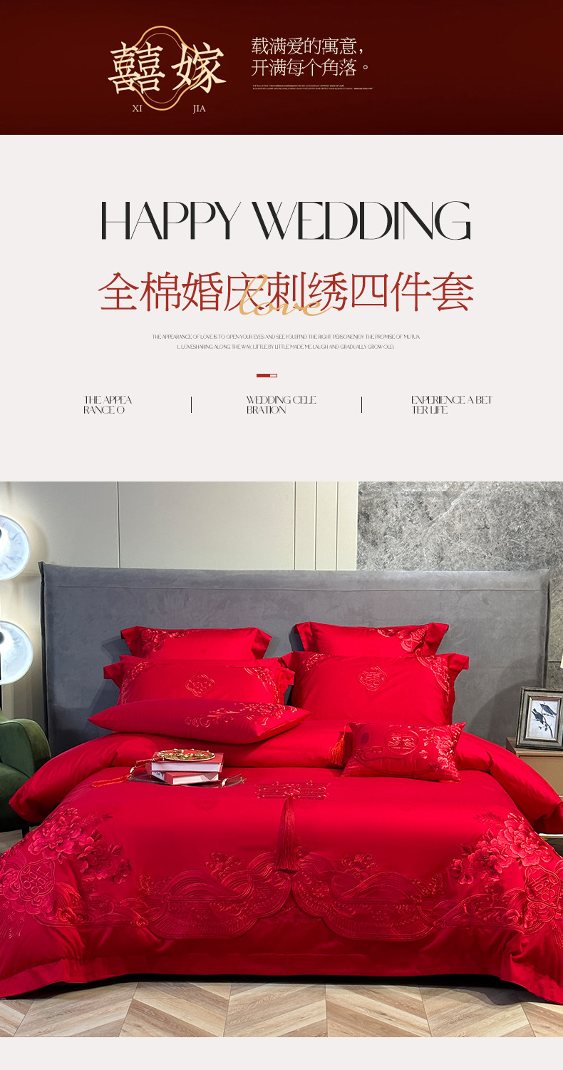 (总)美娘阁 2025新款长绒棉全棉贡缎提花款新中式古典韵味精美刺绣婚庆四件套系列,红颜知己,龙凤大喜,龙凤江山,龙凤喜嗣,龙腾盛世