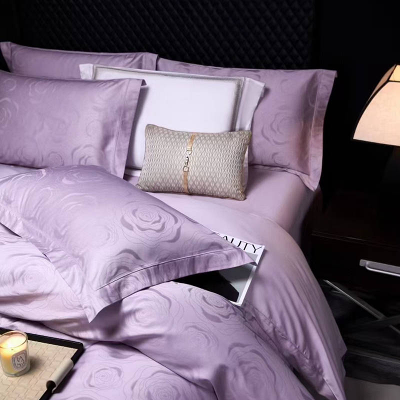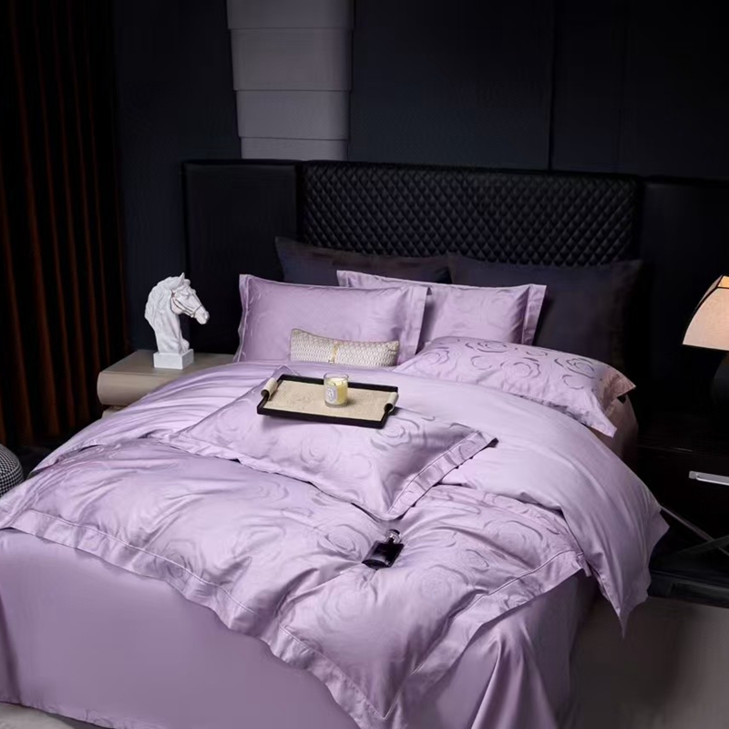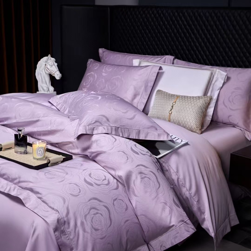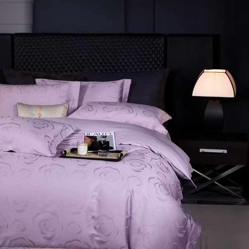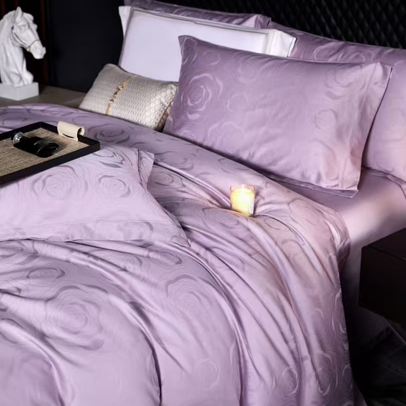 商品名称:玖琳家纺 2025新款100s提花高支高密新疆长绒棉四件套 玫瑰爱恋 香芋紫
