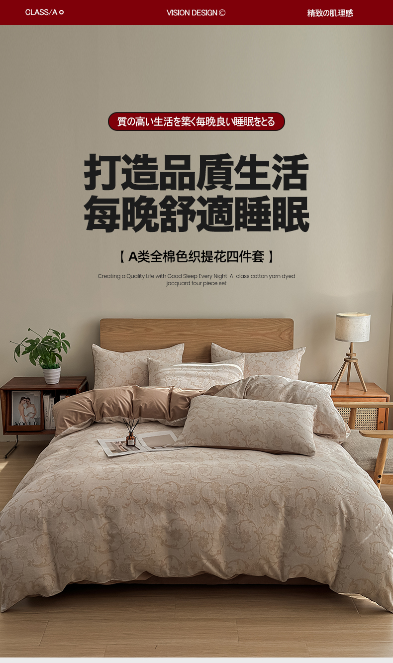 (总)莱茵家居 2025新款A类60支厚织提花美拉德风全棉纯棉四件套-暮合系列,暮合-可可,暮合-米咖,暮合-奶茶,暮合-棕榈