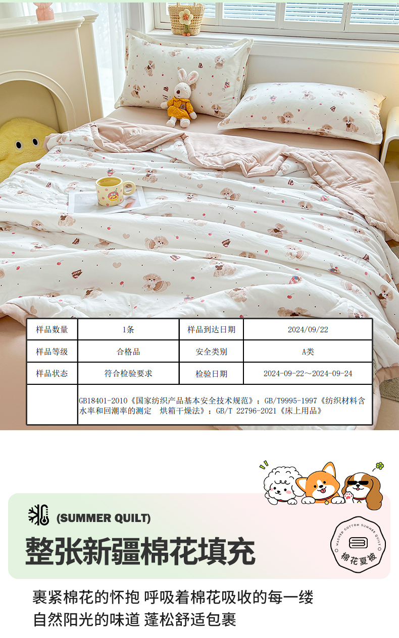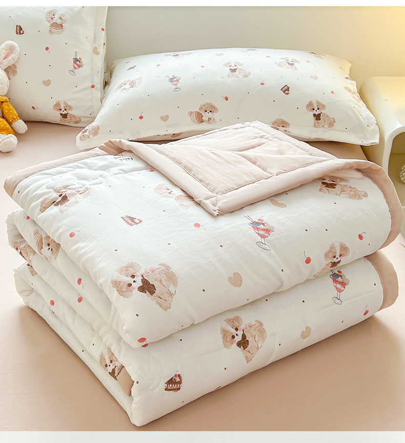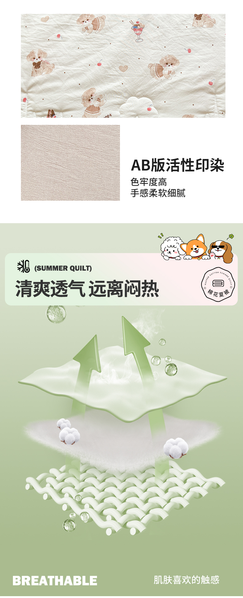 商品名称: 2025新款A类新疆棉花夏凉被加宽包边水洗棉卡通印花吸湿透气棉花夏被空调被 凌香 樱桃狗