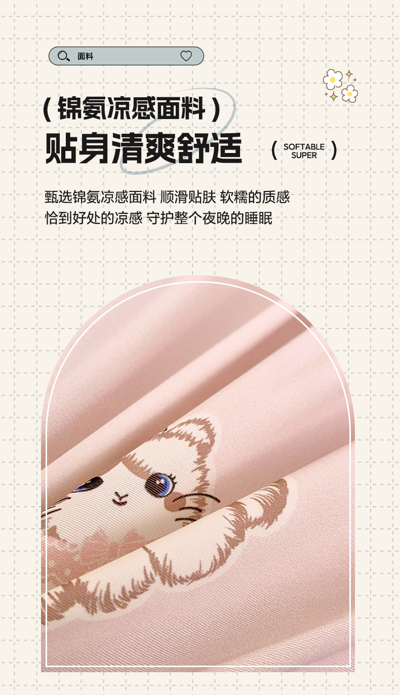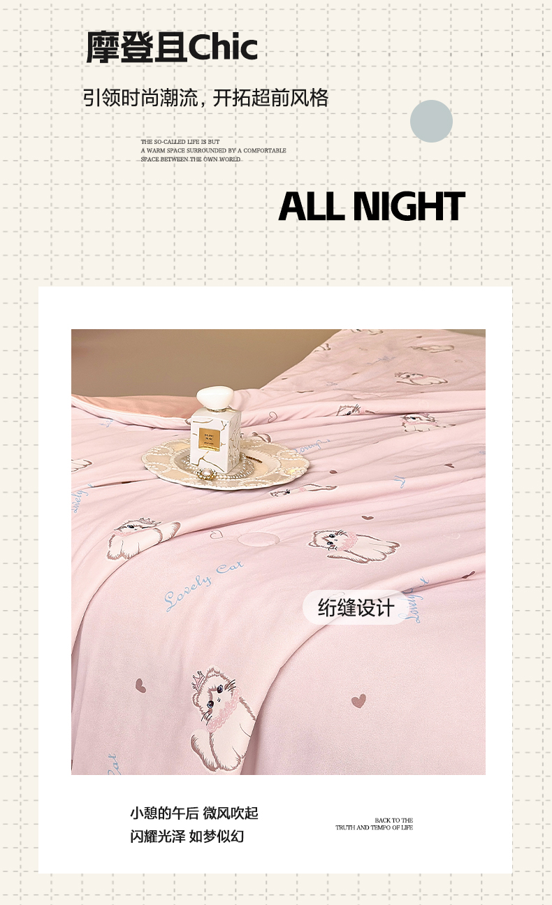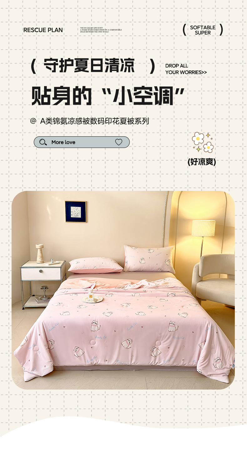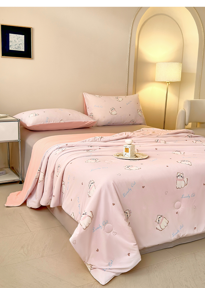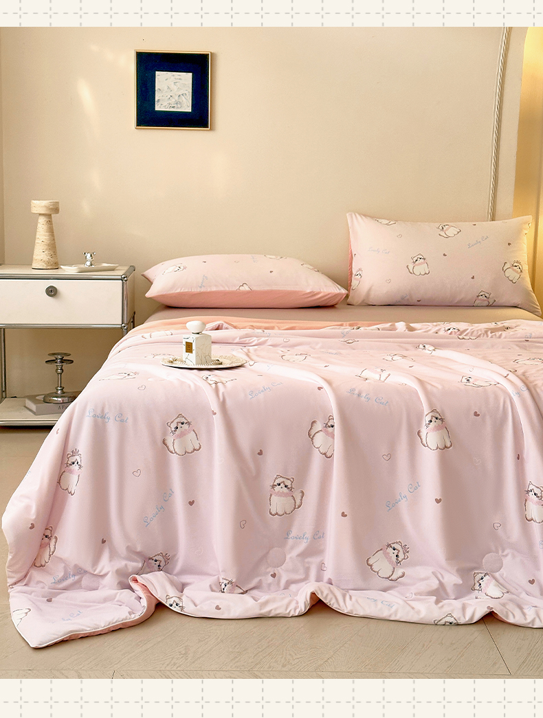 商品名称:莱登卡奴 2025新款A类锦氨凉感被数码印花夏被 幸运喵粉色