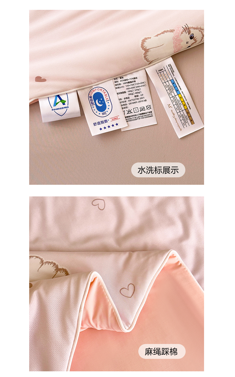 (总)莱登卡奴 2025新款A类原棉水洗棉轻奢贴标麻绳款大豆被被子被芯,轻奢-粉玉,轻奢-奶白,轻奢-浅灰
