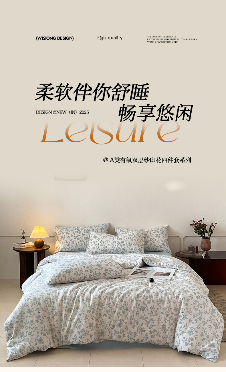 诺梵家纺 2025新款有氧双层纱印花四件套 小苍兰