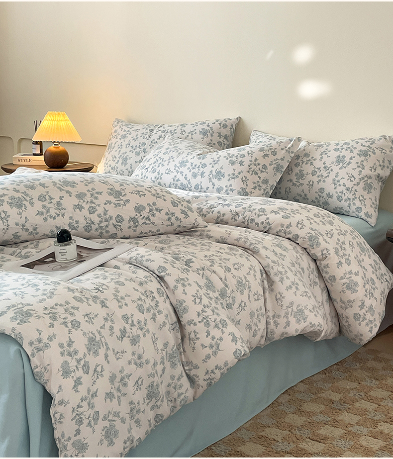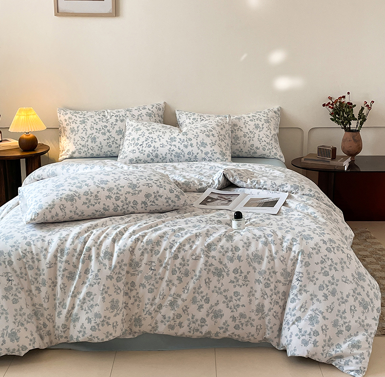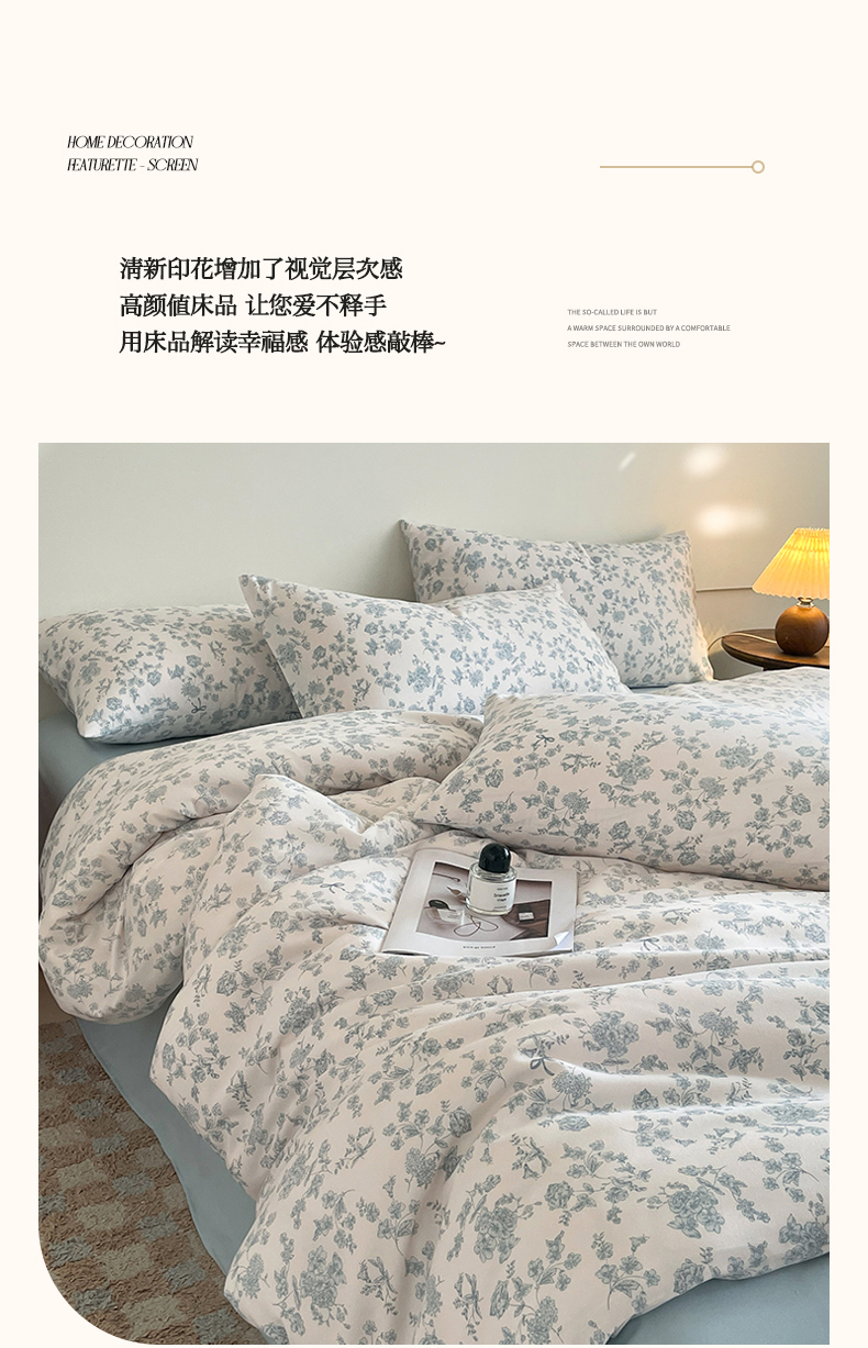 商品名称:诺梵家纺 2025新款有氧双层纱印花四件套 小苍兰