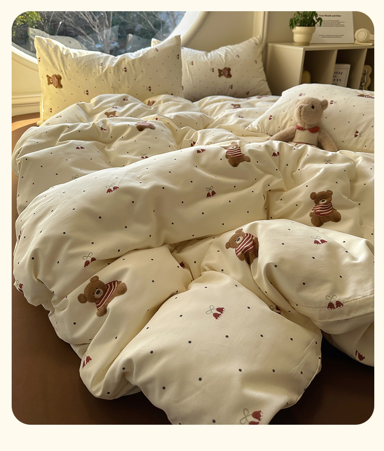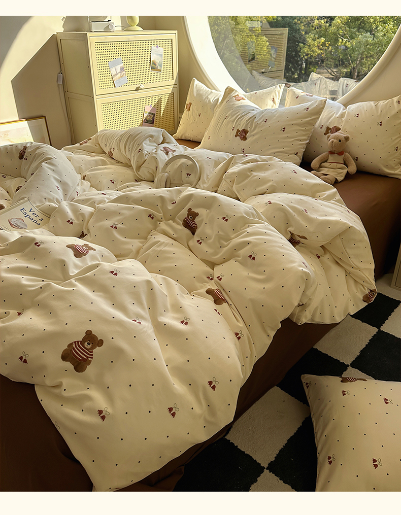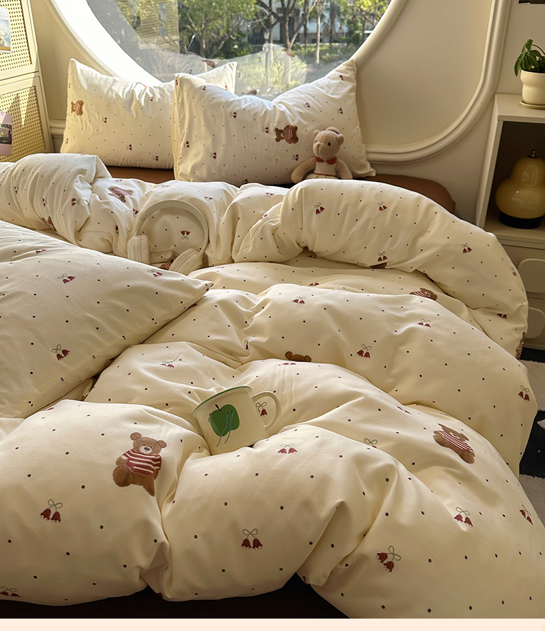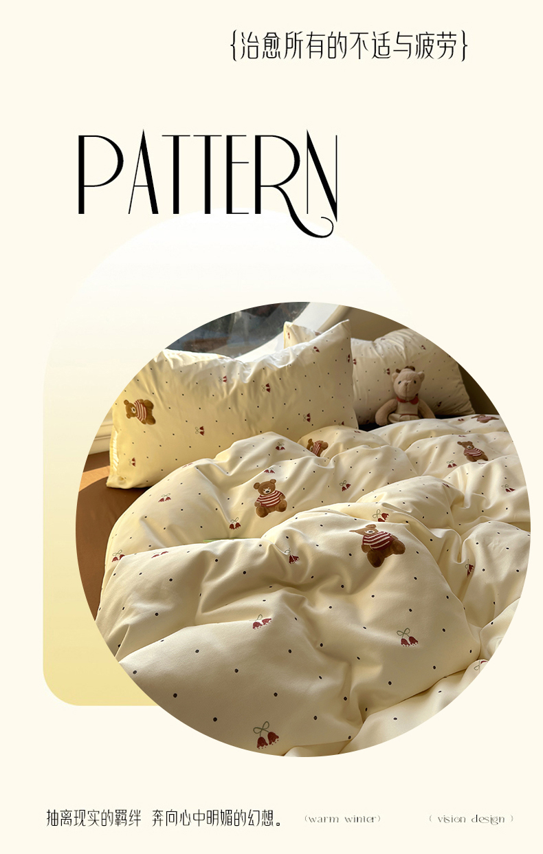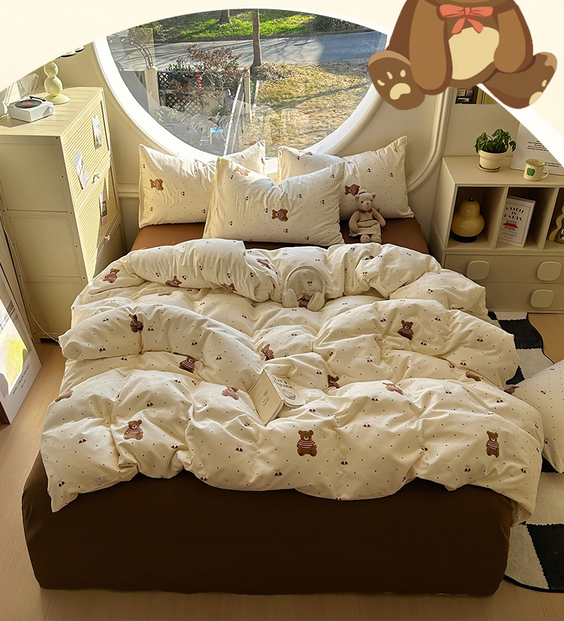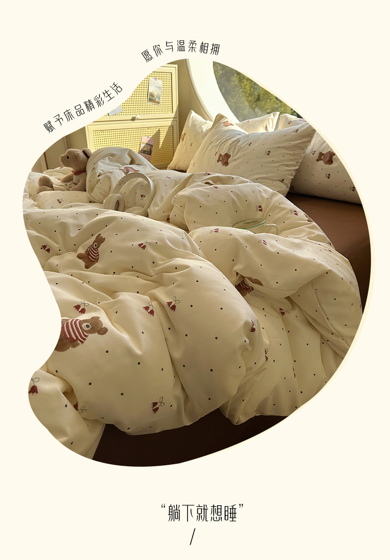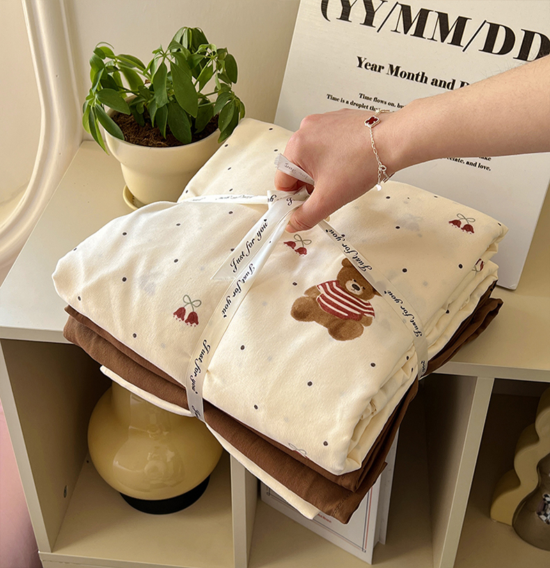 当前位置: 91家纺网 > 商品网购 > 床品套件 > 四件套 > 针织棉四件套 > 花漾家居 2025新款针织双层纱被套枕套四件套 库库熊