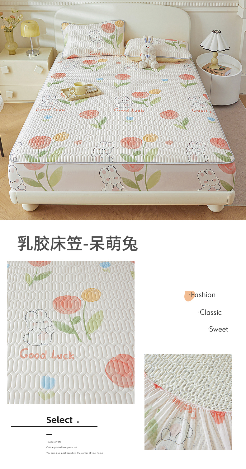 商品名称:雯豆2025夏季新品0.4乳胶凉席床笠款三件套凉感丝印花纯色床罩 乳胶床笠-呆萌兔