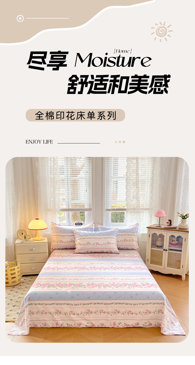 世爵2025春夏新款全棉纯棉印花系列单床单 床单单件 爱枝花语