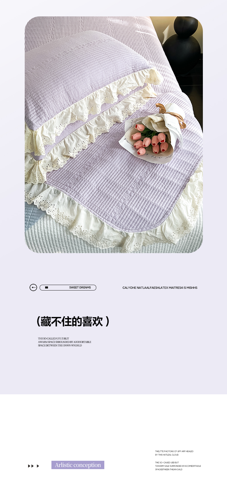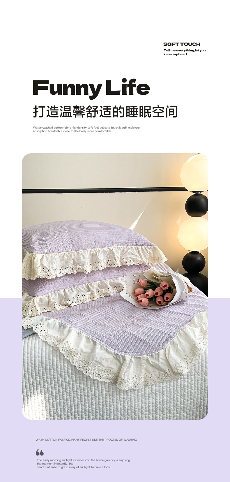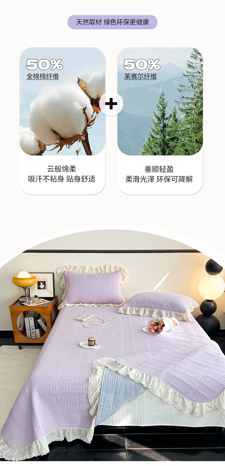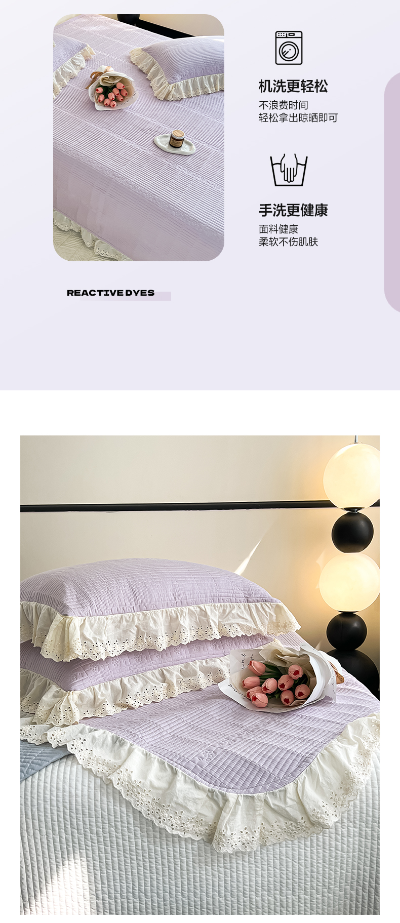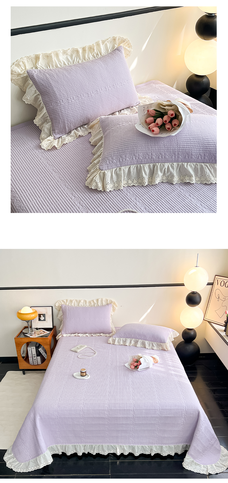 沐纯家居 2025新款棉小乐花边床盖三件套 梦幻紫