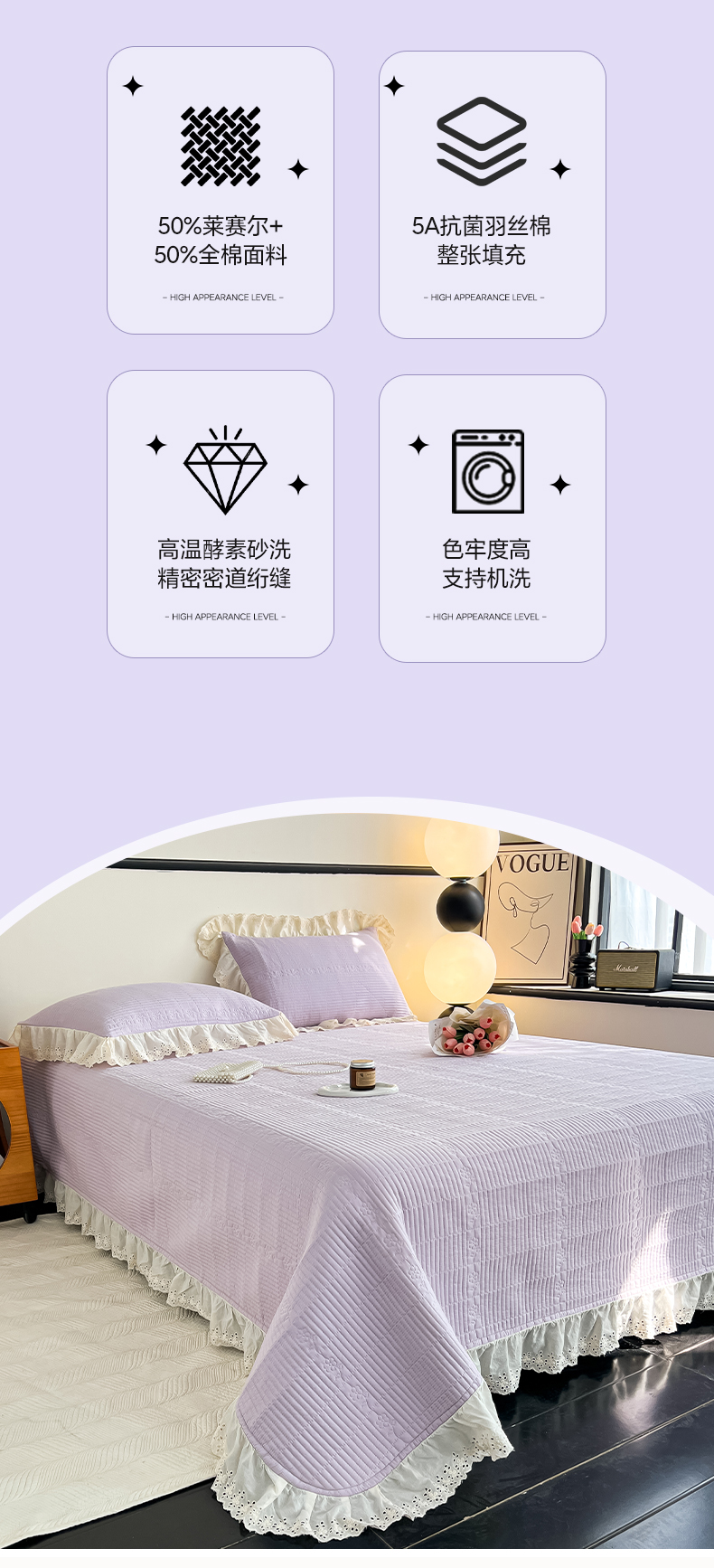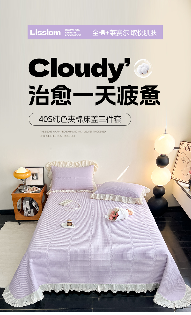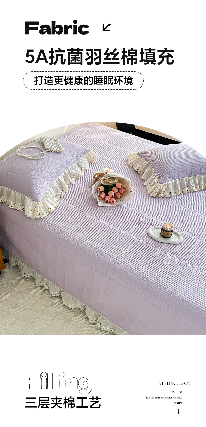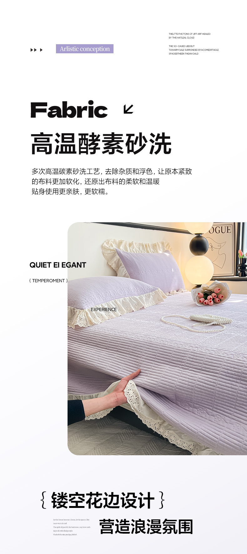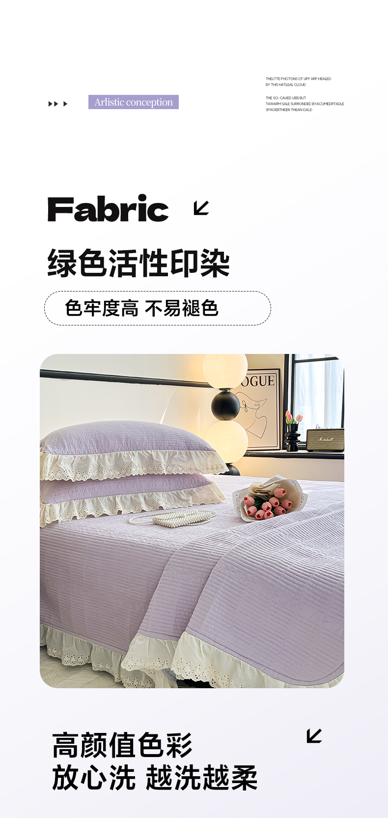 商品名称:沐纯家居 2025新款棉小乐花边床盖三件套 梦幻紫