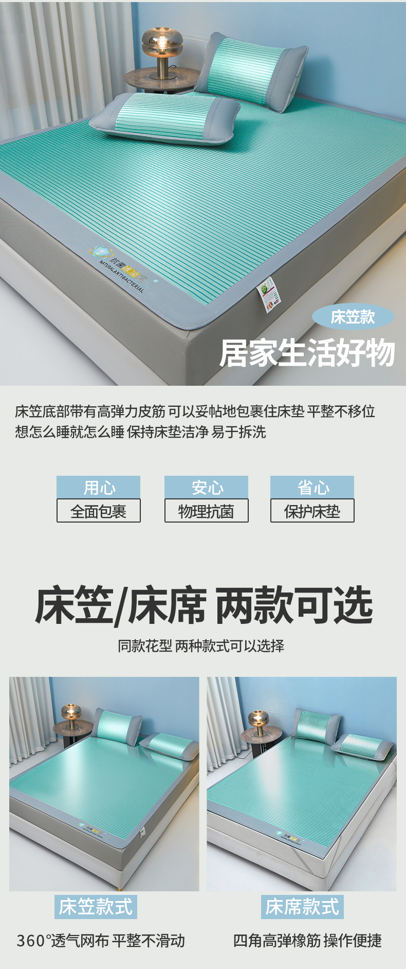 当前位置: 91家纺网 > 商品网购 > 床上用品 > 凉席 > 冰丝席 > 2025新款凉席抗菌三明治可水洗碳光冰丝席宽边刺绣冰丝席 素夏 薄荷绿-床笠款
