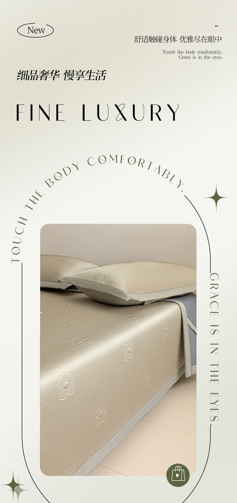 (总)阿亮家居 2025新款A类母婴级1800D碳光小鹿冰丝席凉席,宾利蓝,冰川灰,繁星绿,山茶粉,香槟金