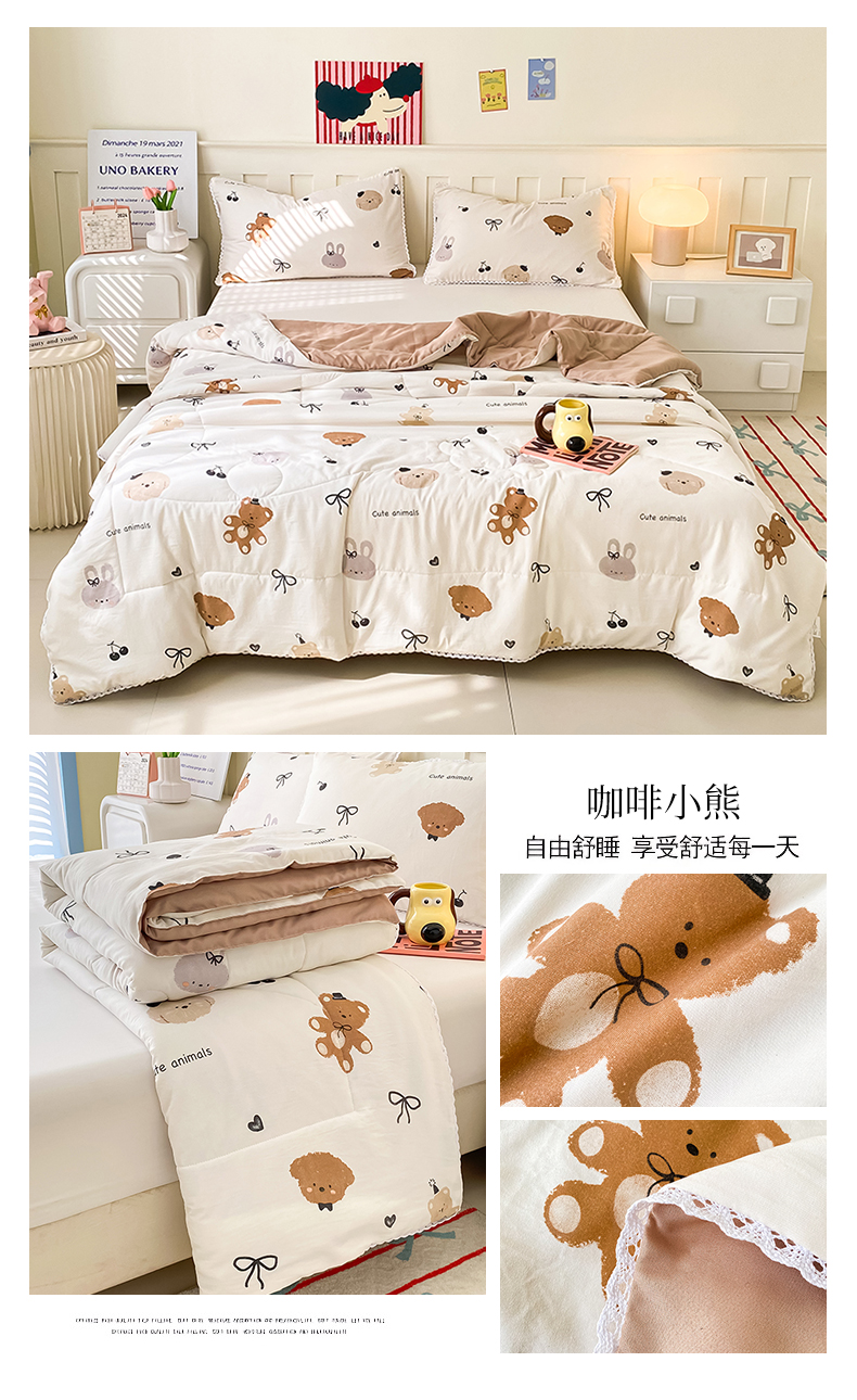 商品名称:佰亿莱 2025春夏新款水洗棉羽丝绒小花边夏被夏凉被空调被 咖啡小熊