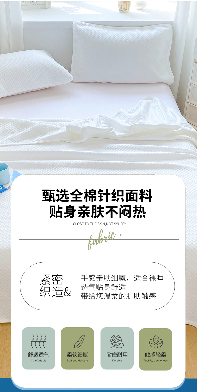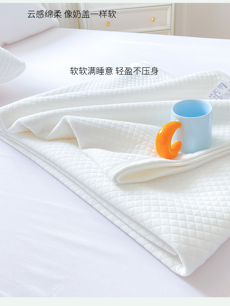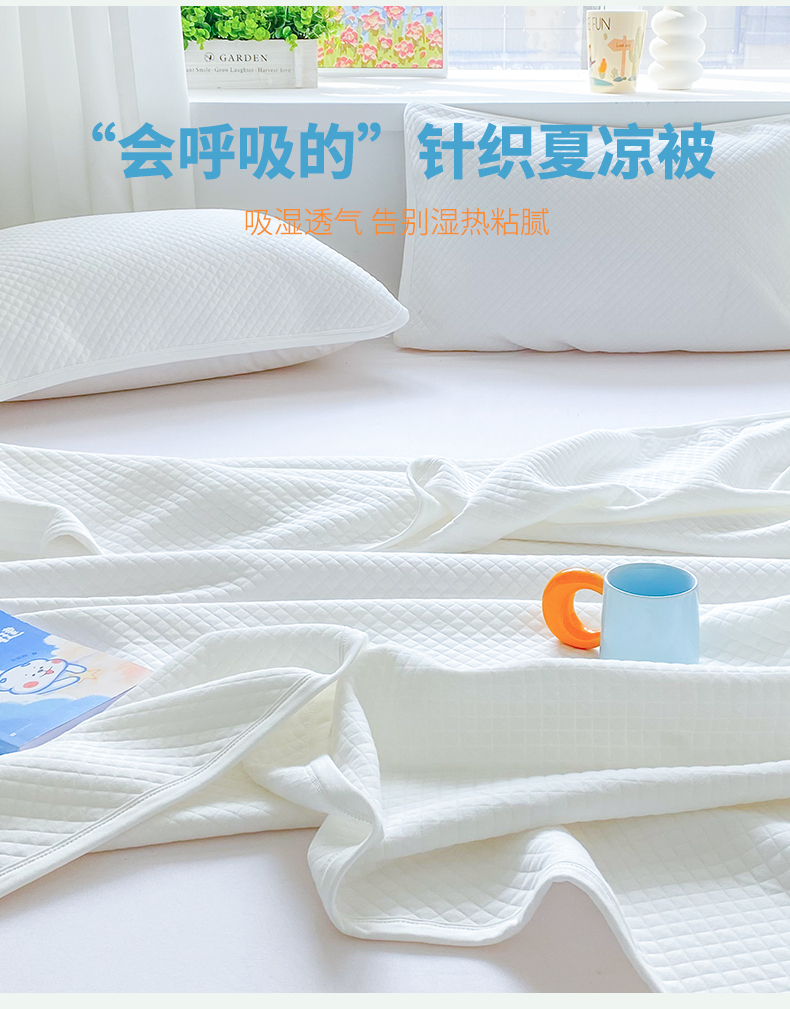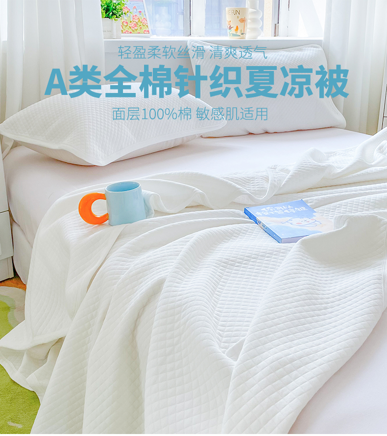 商品名称:来菲毛毯 2025新款全棉针织全面盖毯床单夏被被子被芯 菱雪白