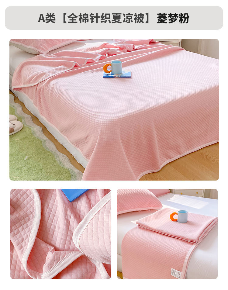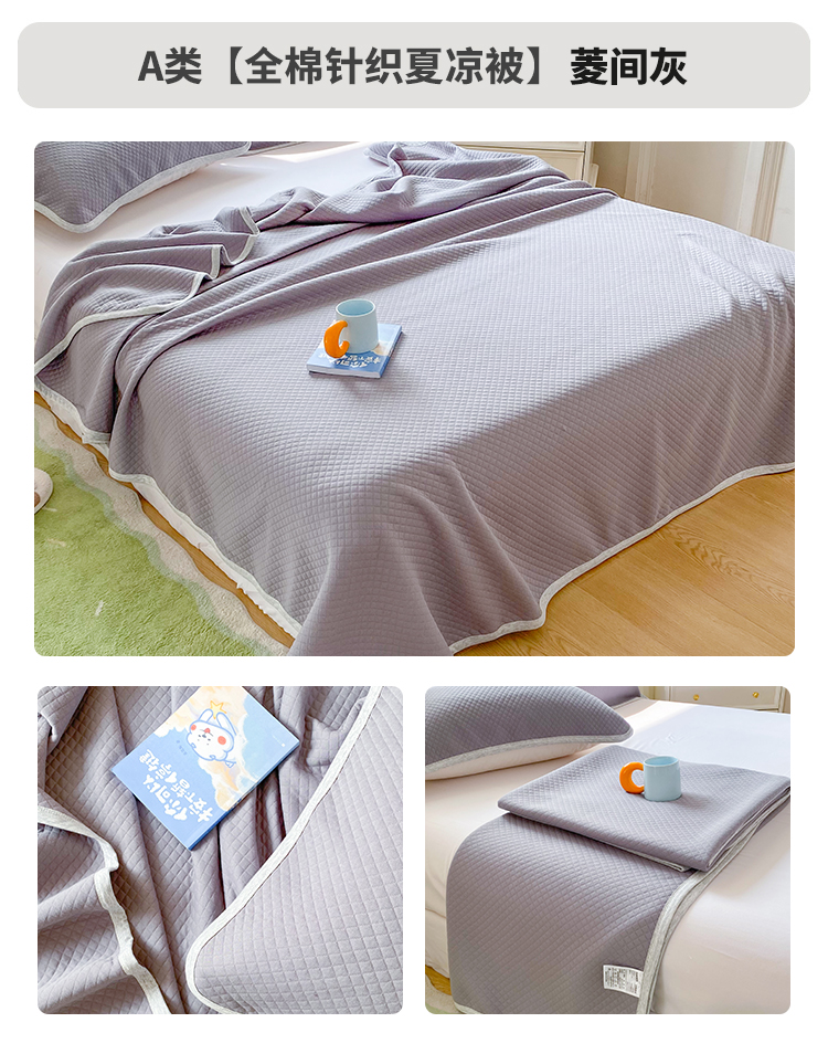 (总)来菲毛毯 2025新款全棉A类针织盖毯夏凉被,粉色,灰色,卡其,蓝灰,奶白