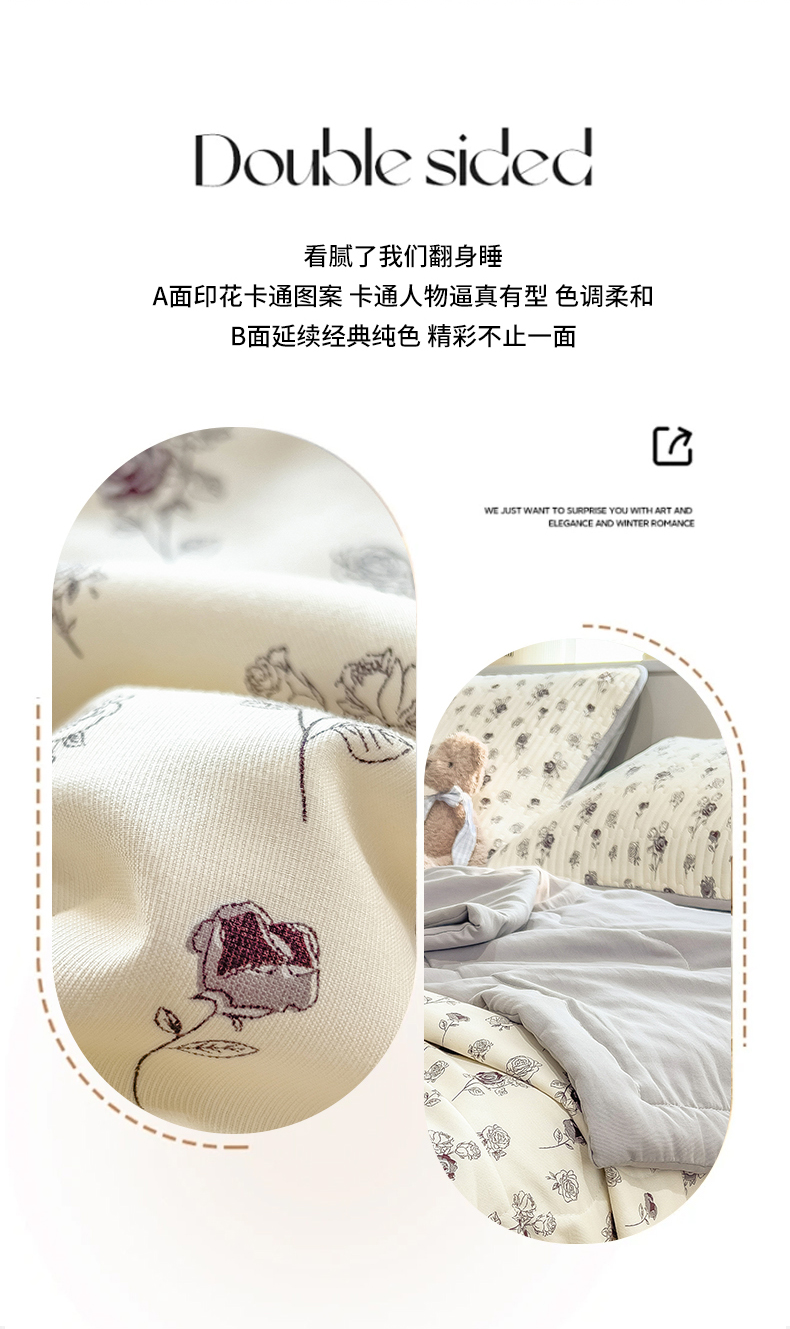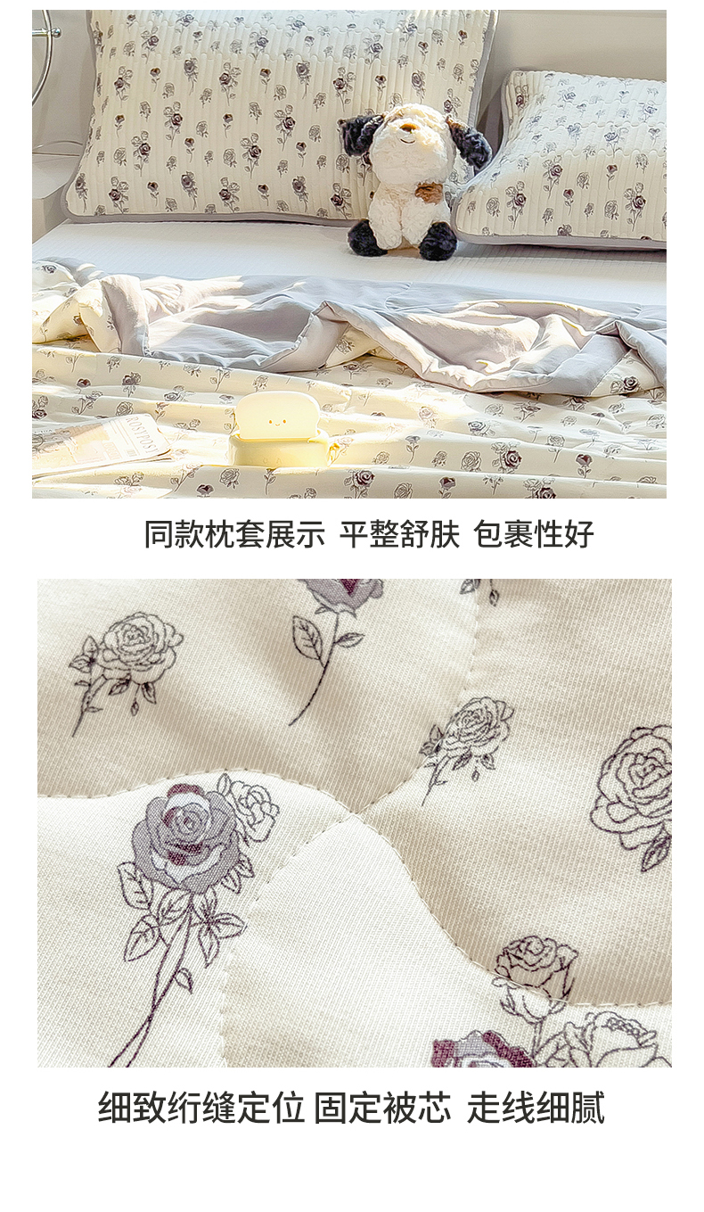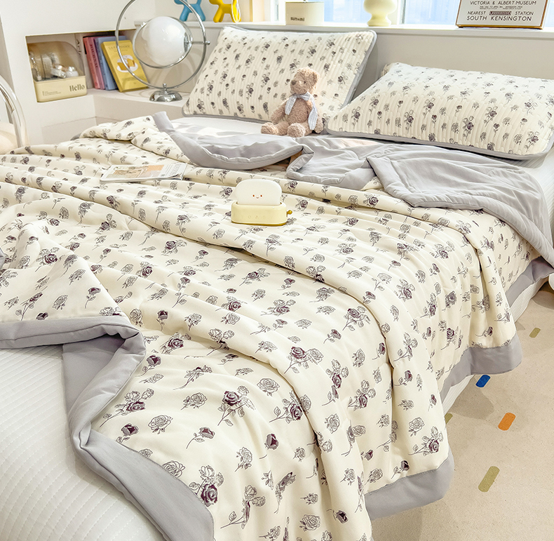 • 91家纺网 家纺一手货源 找家纺 慕木 2025春夏新款双层纱针织棉夏被夏凉被空调被 月光玫瑰