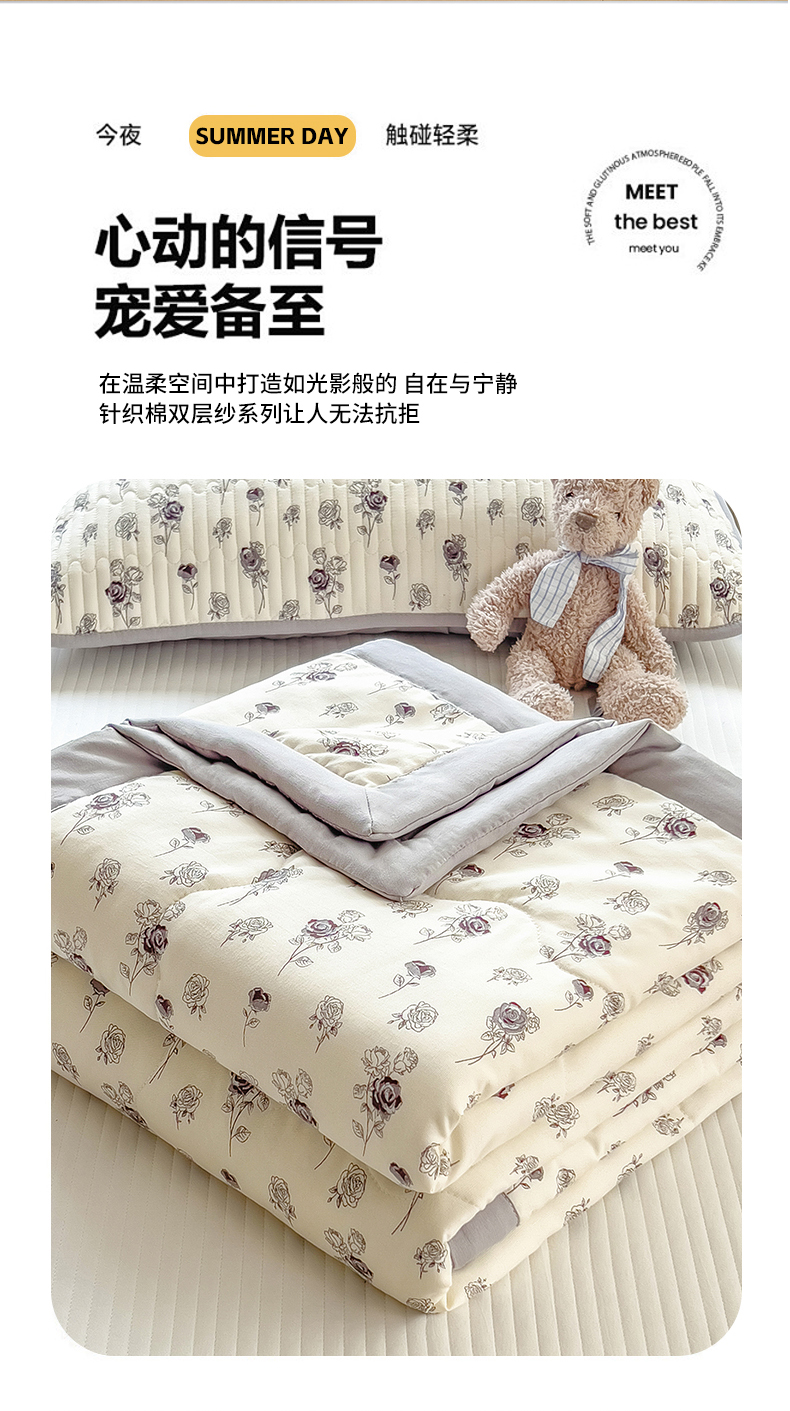 当前位置: 91家纺网 > 商品网购 > 被子 > 夏被 > 慕木 2025春夏新款双层纱针织棉夏被夏凉被空调被 月光玫瑰