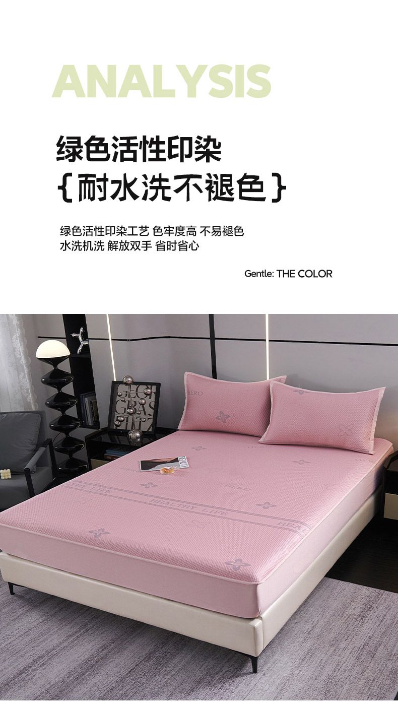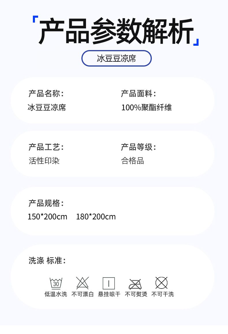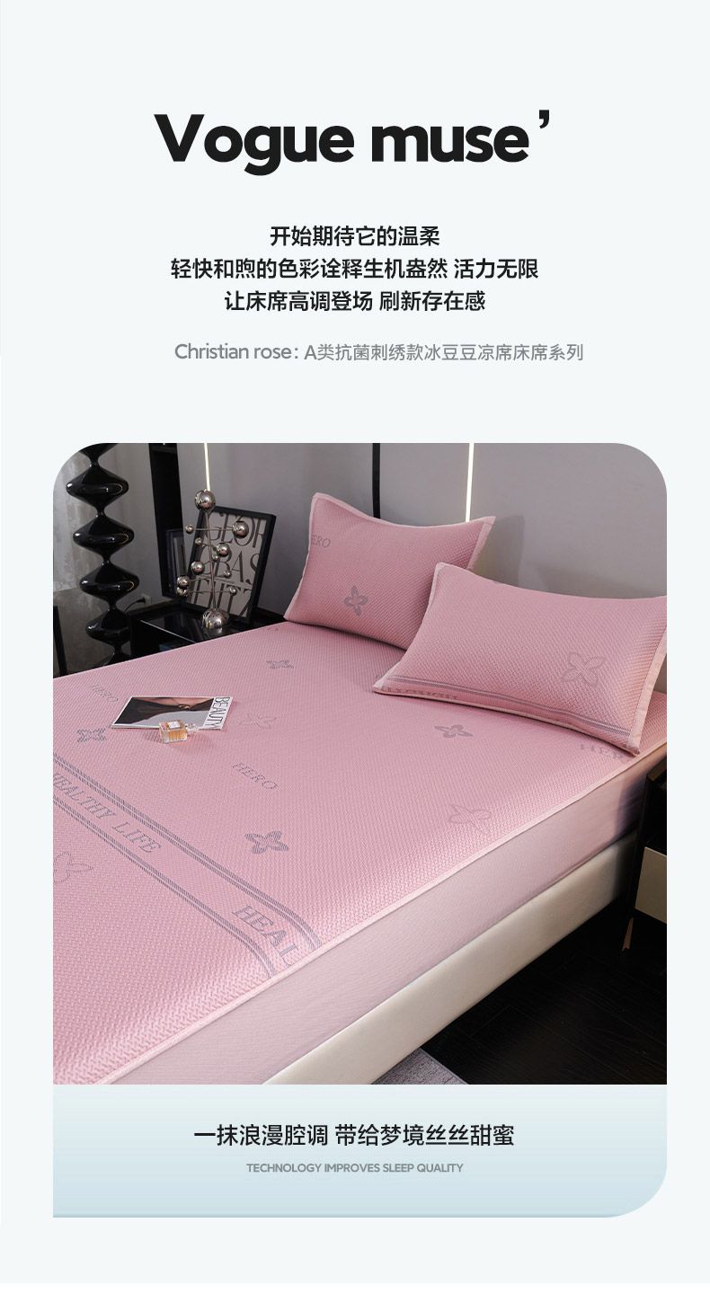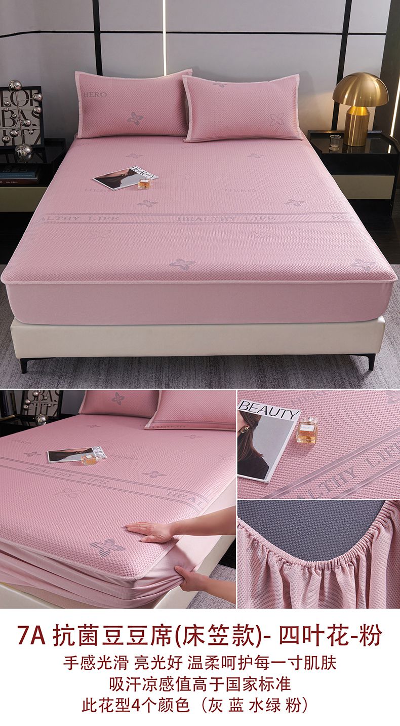 商品名称:梵克保罗 2025新款7A抗菌母婴级纯乙纶PE刺绣凉感丝豆豆席 床笠款 床笠款 四叶花-蓝