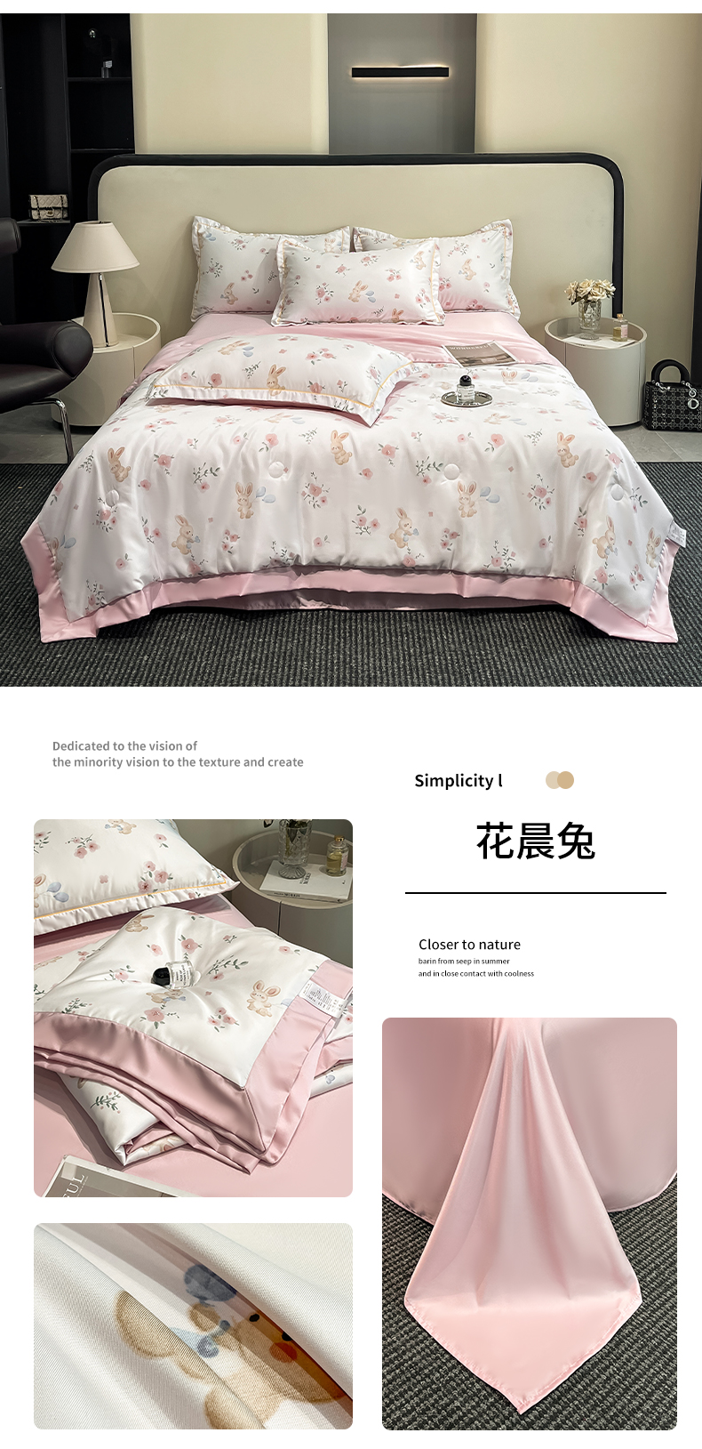 佳品居 2025新款直播水洗天丝夏被冰丝夏凉被空调被四件套 花晨兔