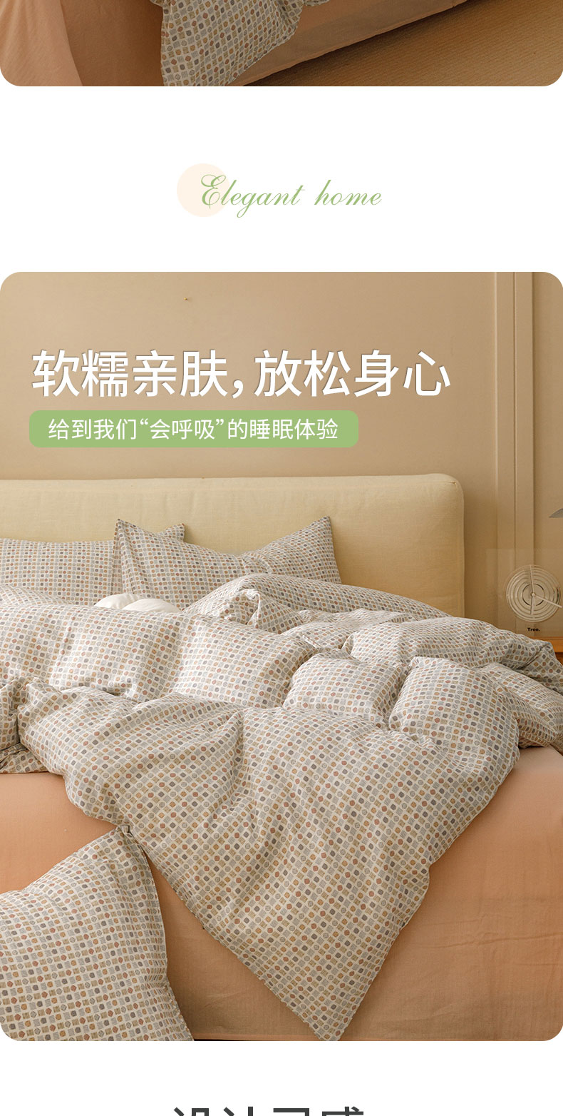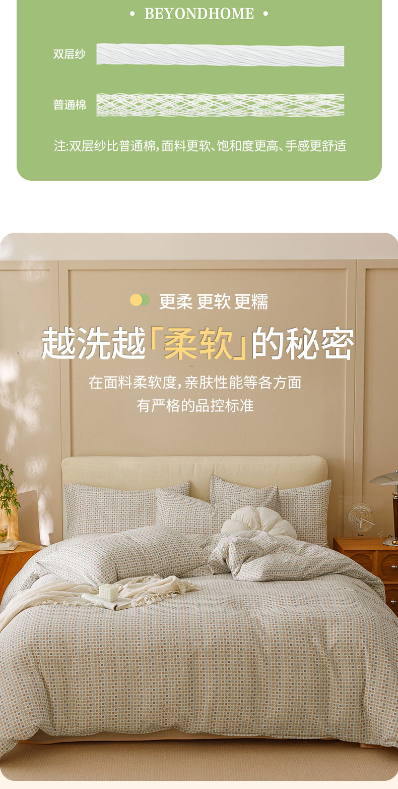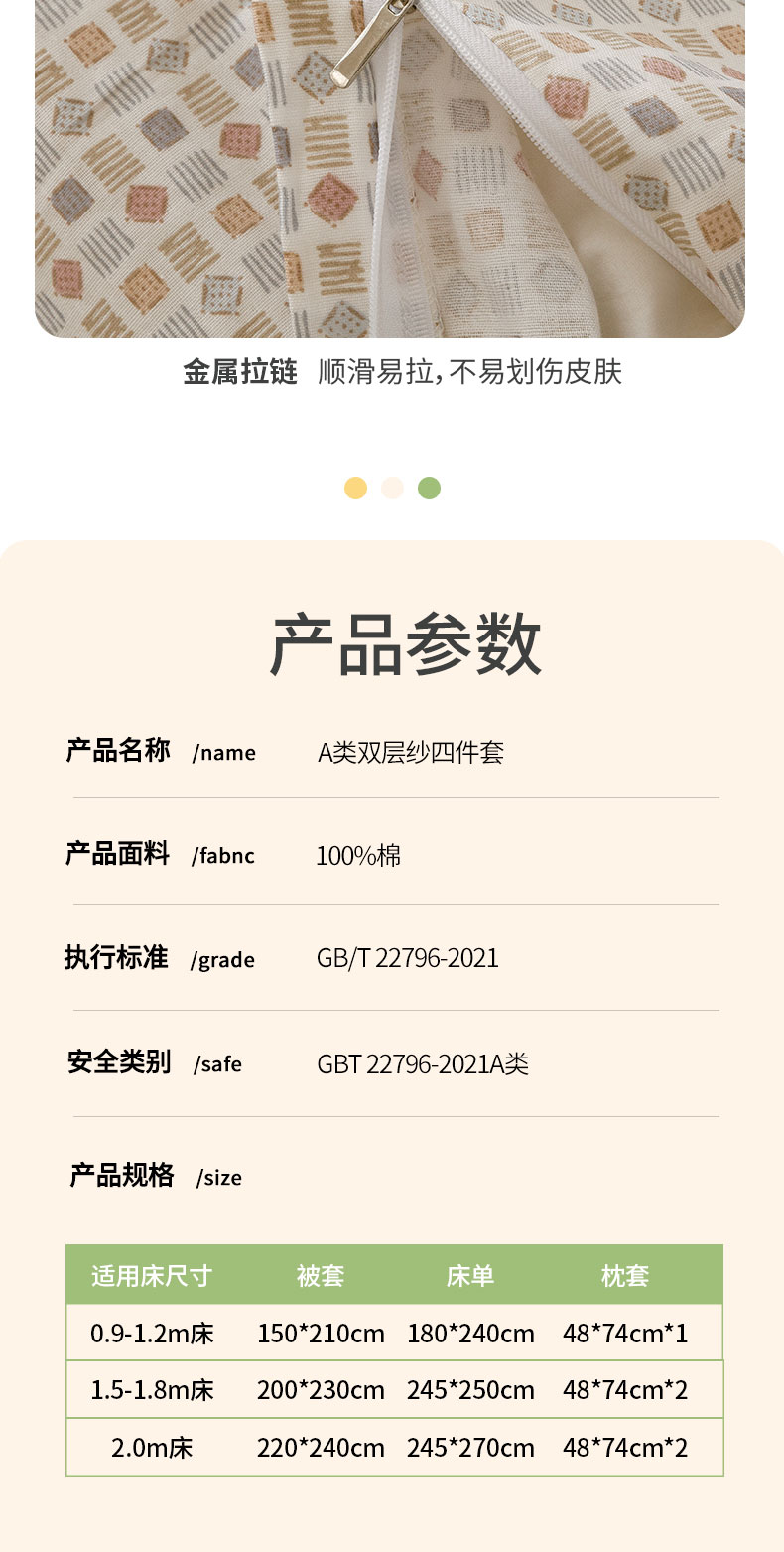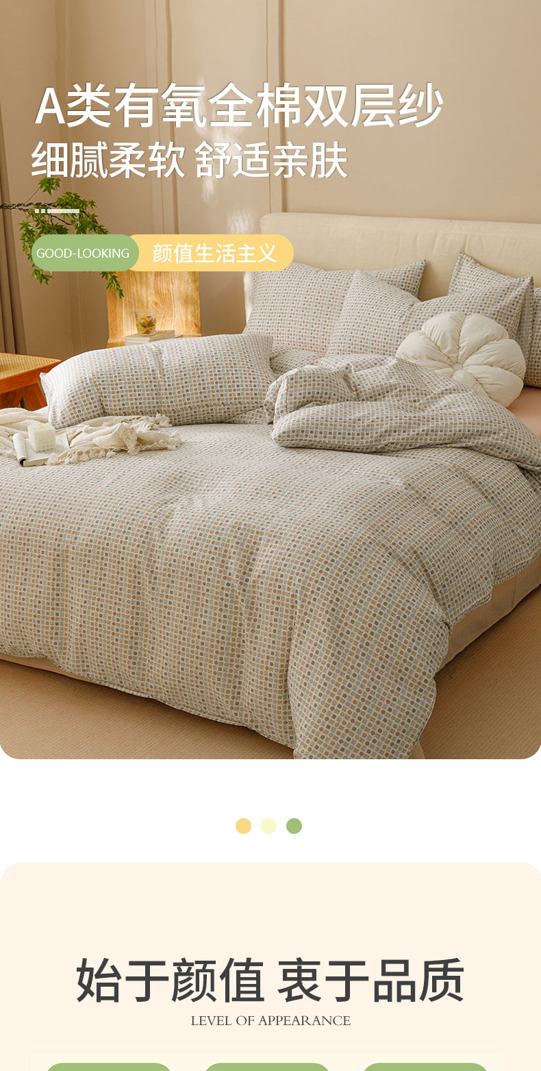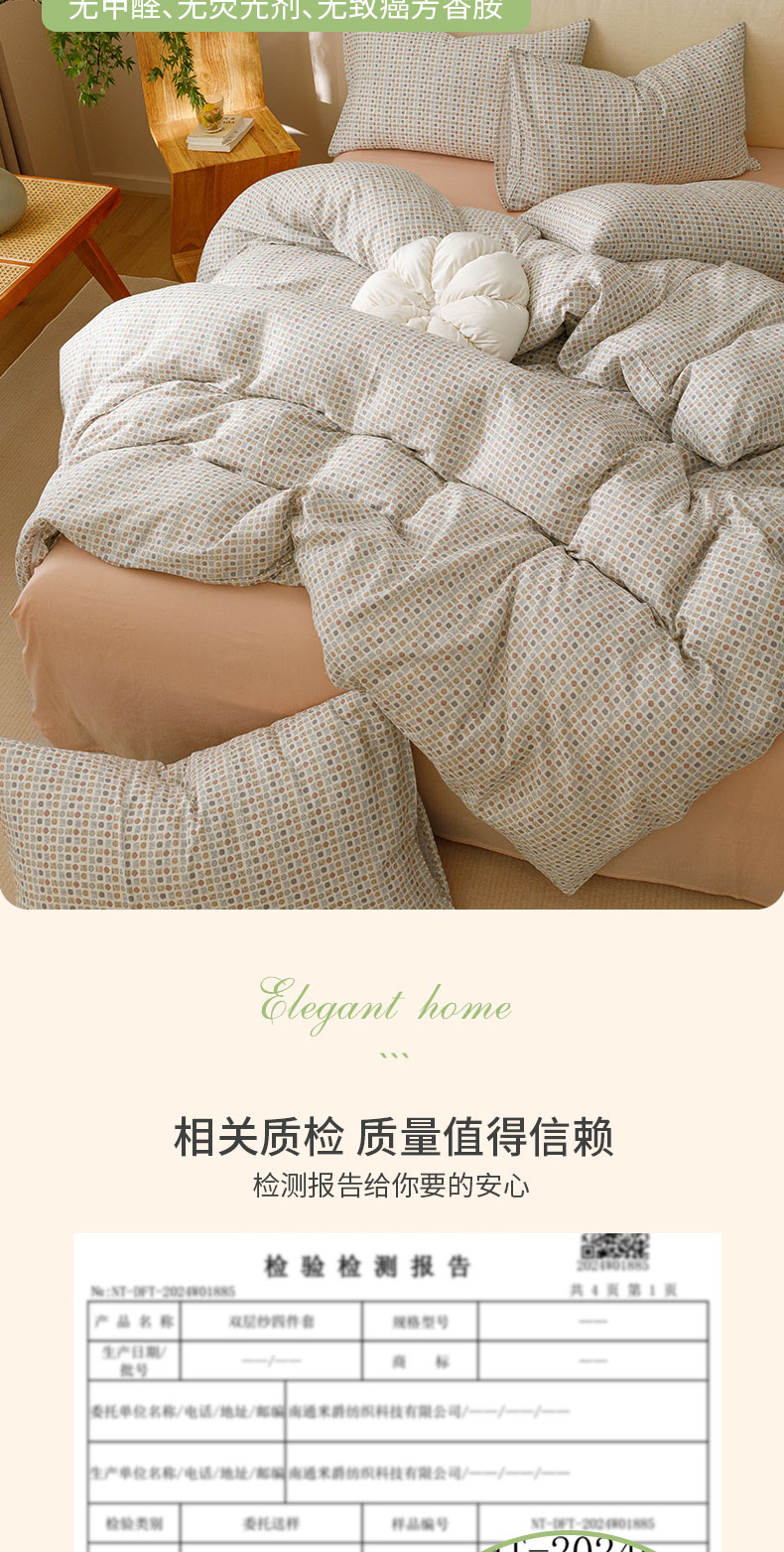 商品名称:瑞米家居 2024新款亲肤舒适A类双层纱四件套 浅忆