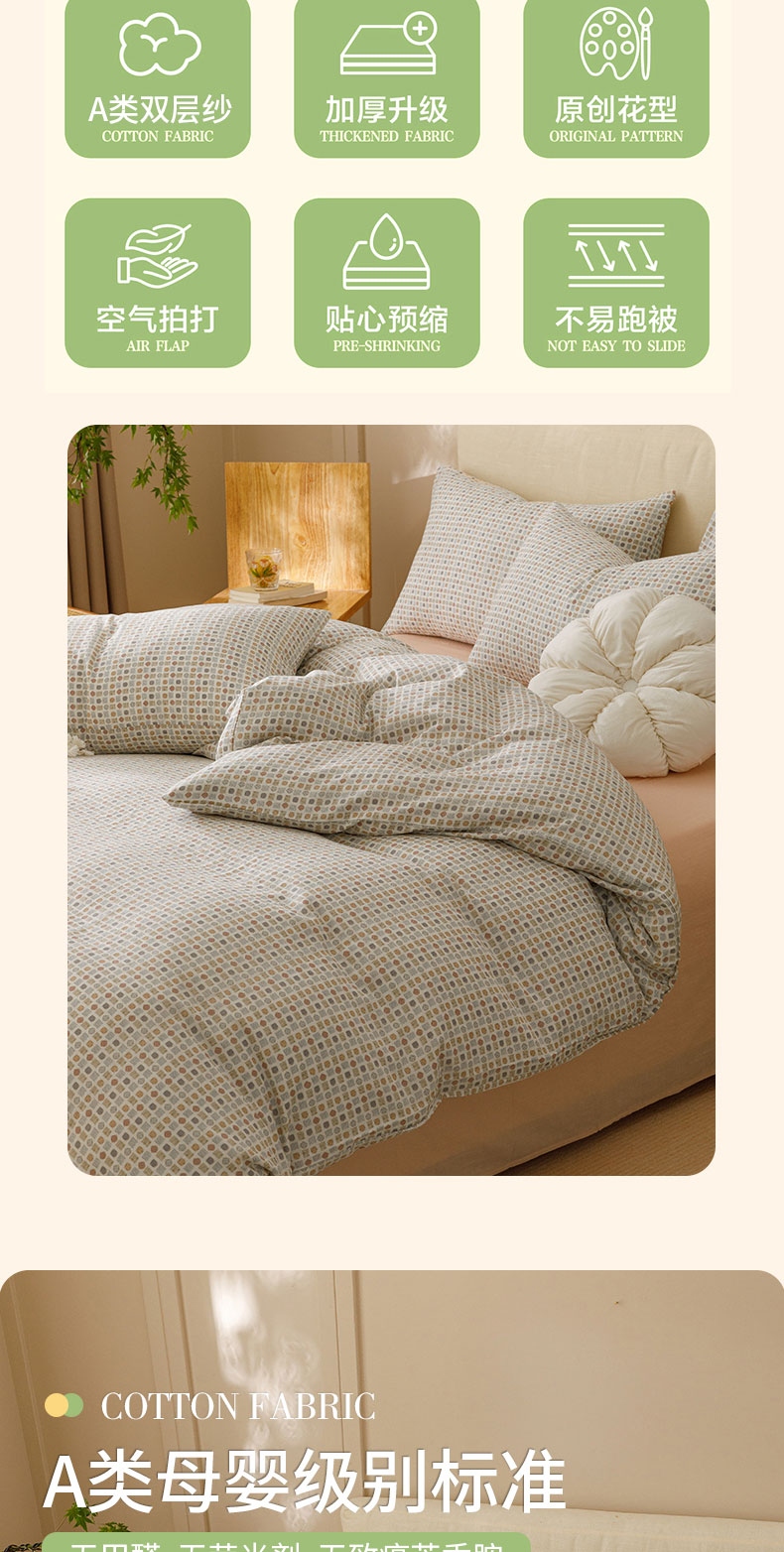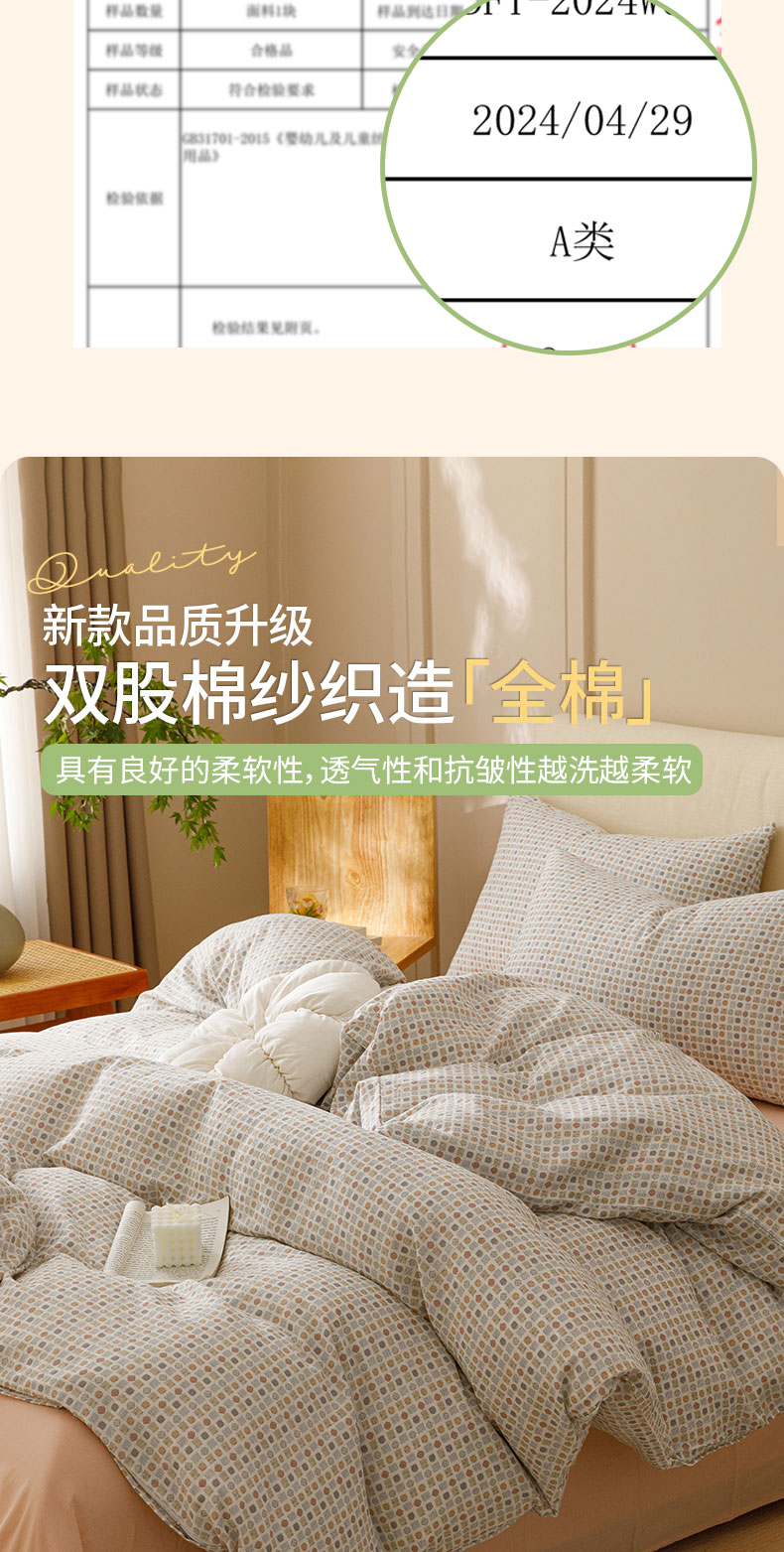 (总)瑞米家居 2024新款亲肤舒适A类双层纱四件套,草莓甜心,格子熊猫,花晨,花园小兔,绿意盎然,浅忆,苏夏,田园印象,甜蜜樱桃