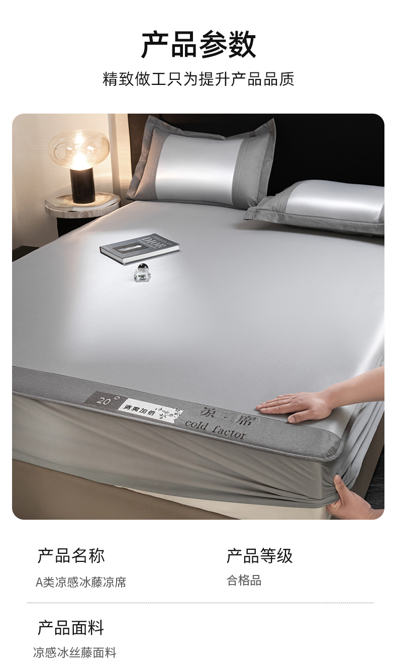商品名称:孩子王家纺2025新款轻柔丝凉席冰丝席-凉感席系列 床笠款-高级灰