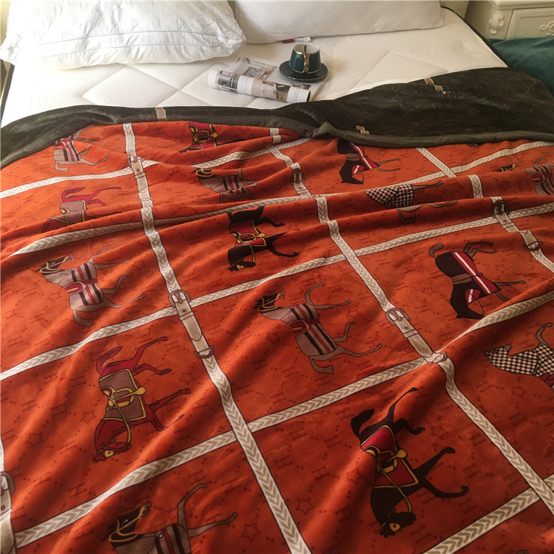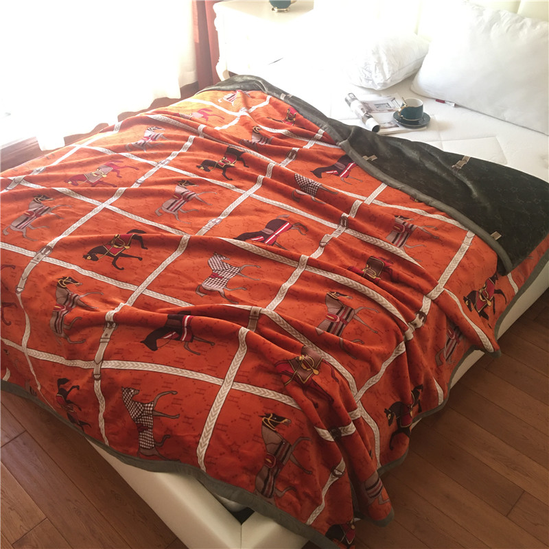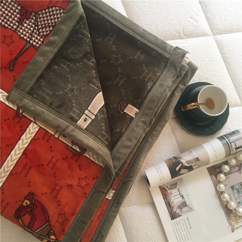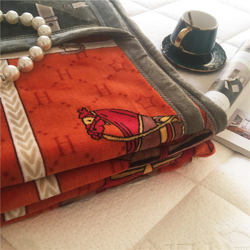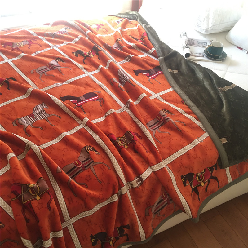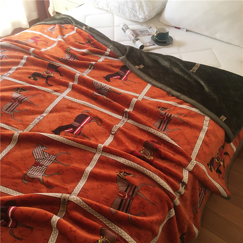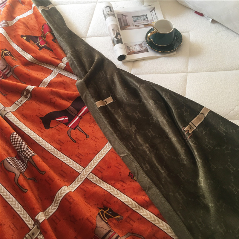 总 2023双层大版AB版云貂绒毛毯法莱绒休闲盖毯沙发空调毯,骏马,圣马罗-黄,圣马罗-兰