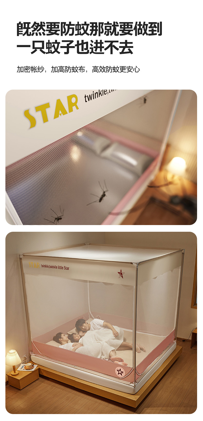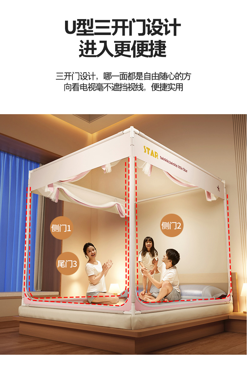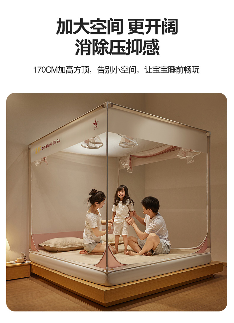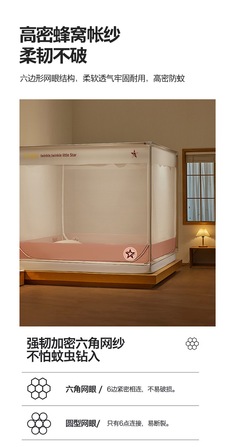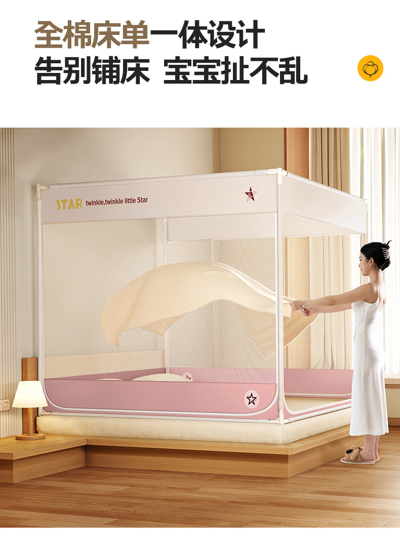 当前位置: 91家纺网 > 商品网购 > 床上用品 > 蚊帐 > 青竹苑 2025新款无印字母三门坐床床笠底防摔蚊帐 星星