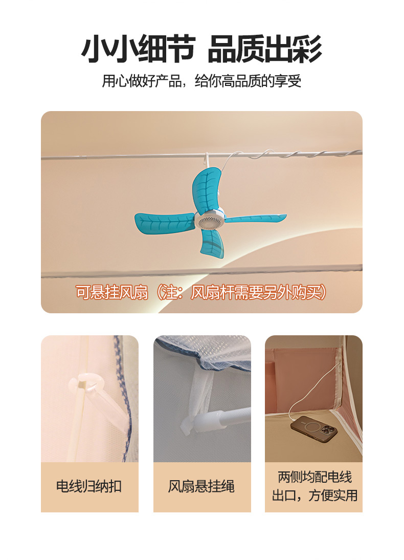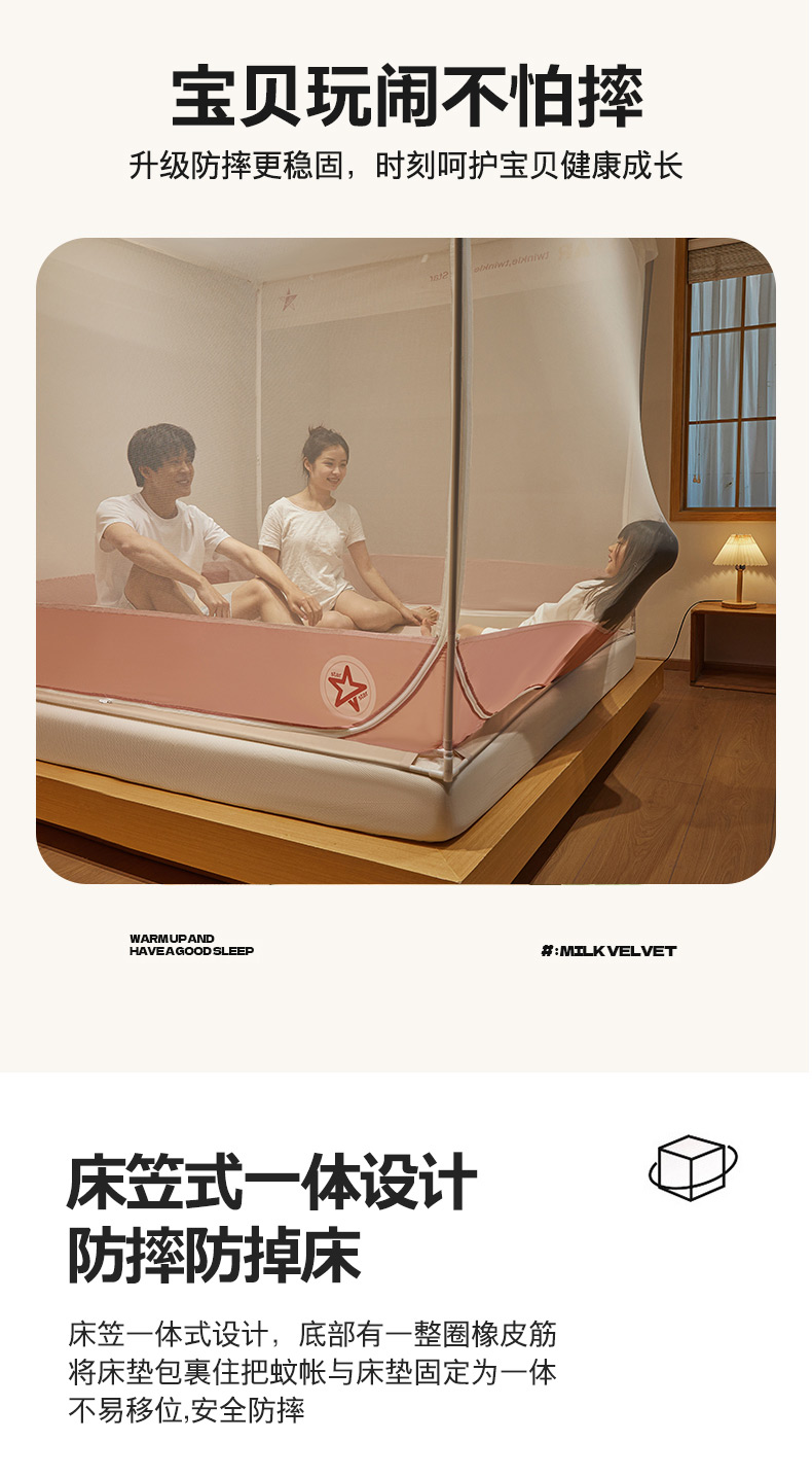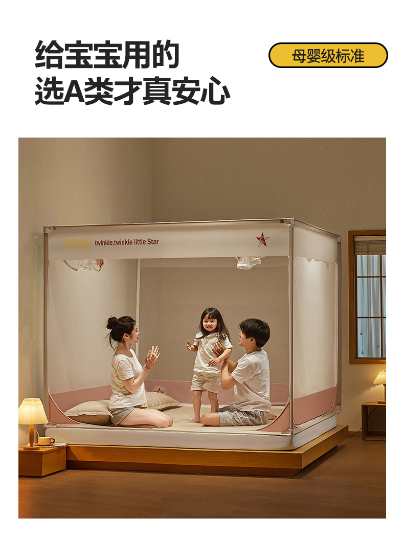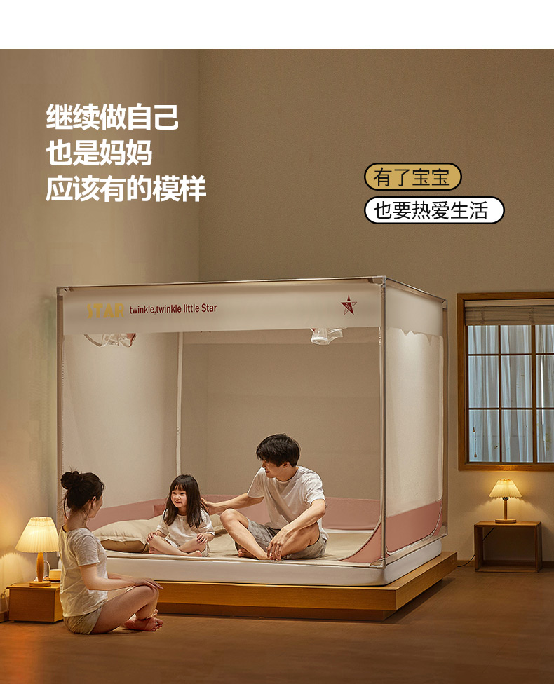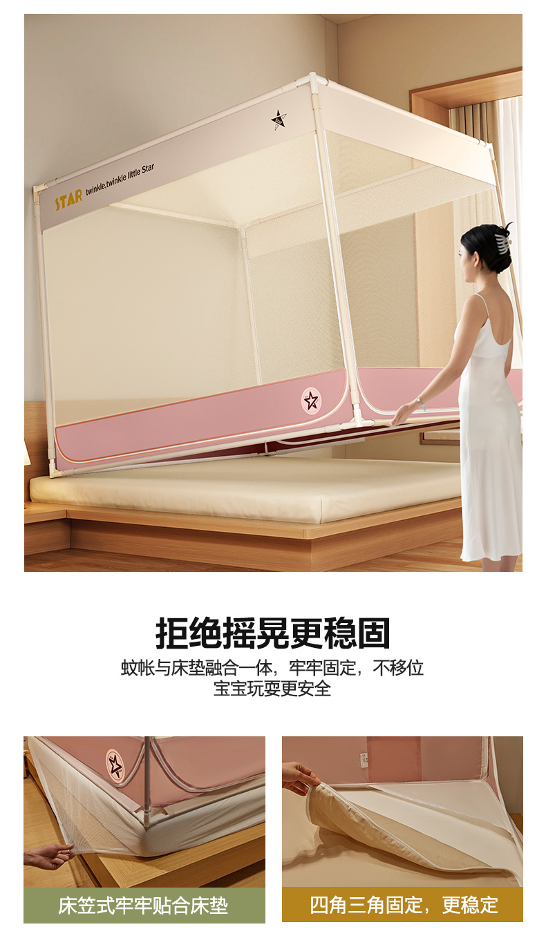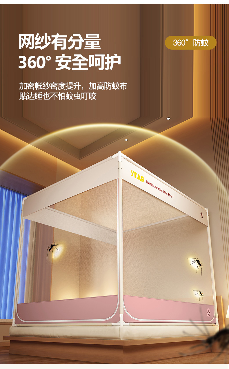 当前位置: 91家纺网 > 商品网购 > 床上用品 > 蚊帐 > 青竹苑 2025新款无印字母三门坐床床笠底防摔蚊帐 星星