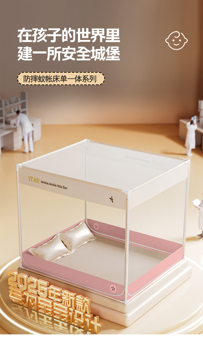 • 91家纺网 家纺一手货源 找家纺 青竹苑 2025新款无印字母三门坐床床笠底防摔蚊帐 星星