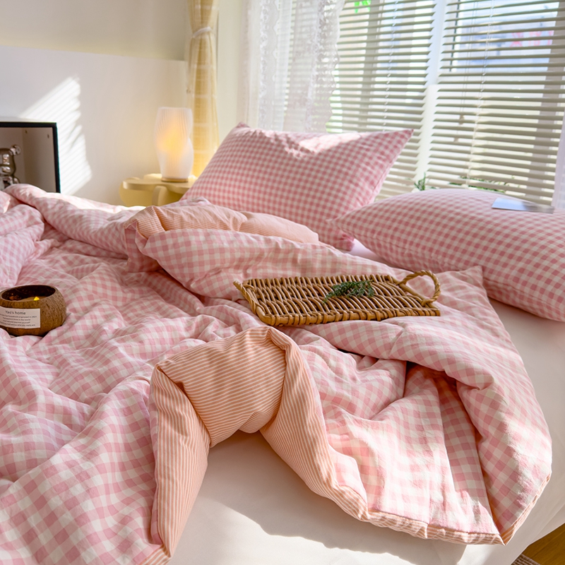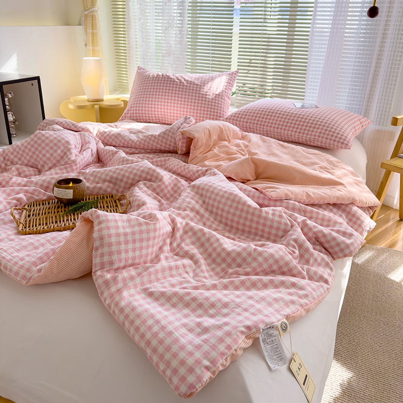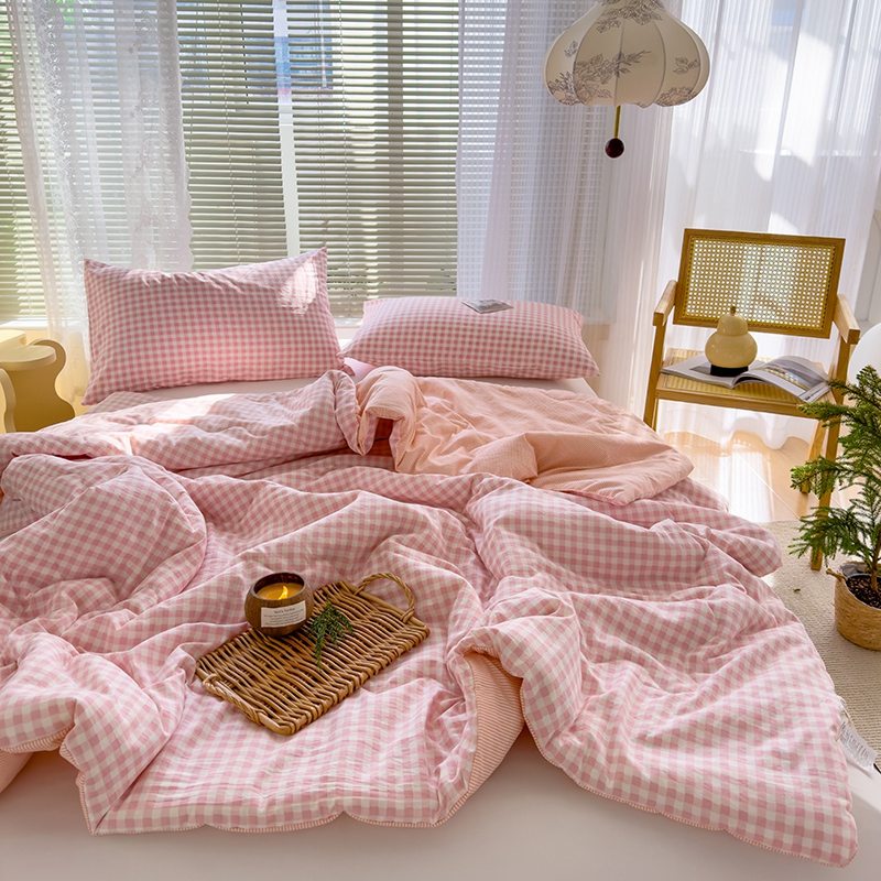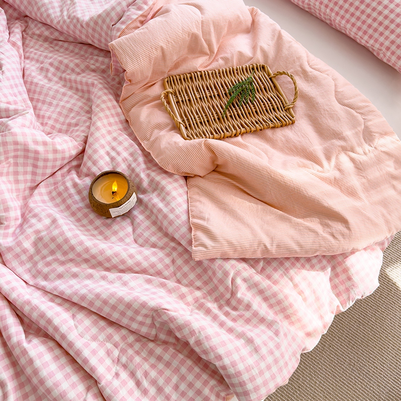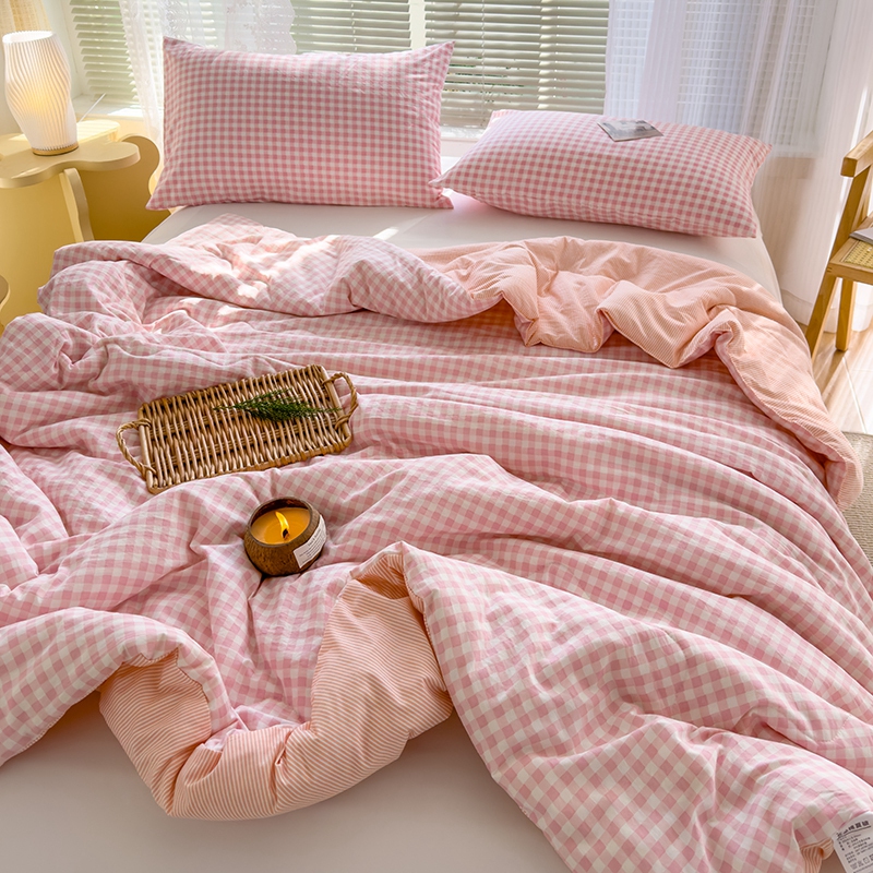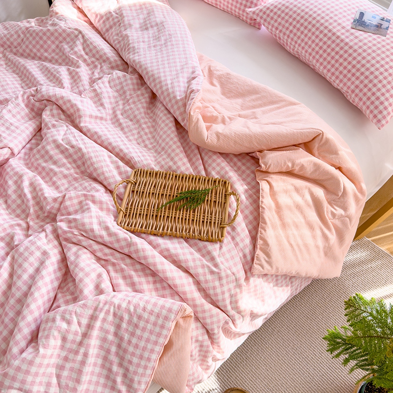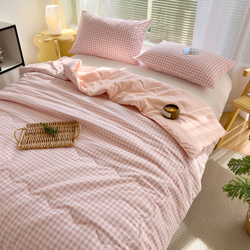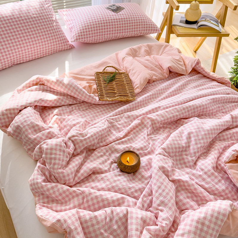 (总)老帅的工厂店 2025新款云朵棉无印风格子夏被,冰激凌粉,洛卡蓝,麦田黄,麦田蓝,青柠绿,蓝小格,粉小格,黄小格,咖大格,蓝大格,绿小格