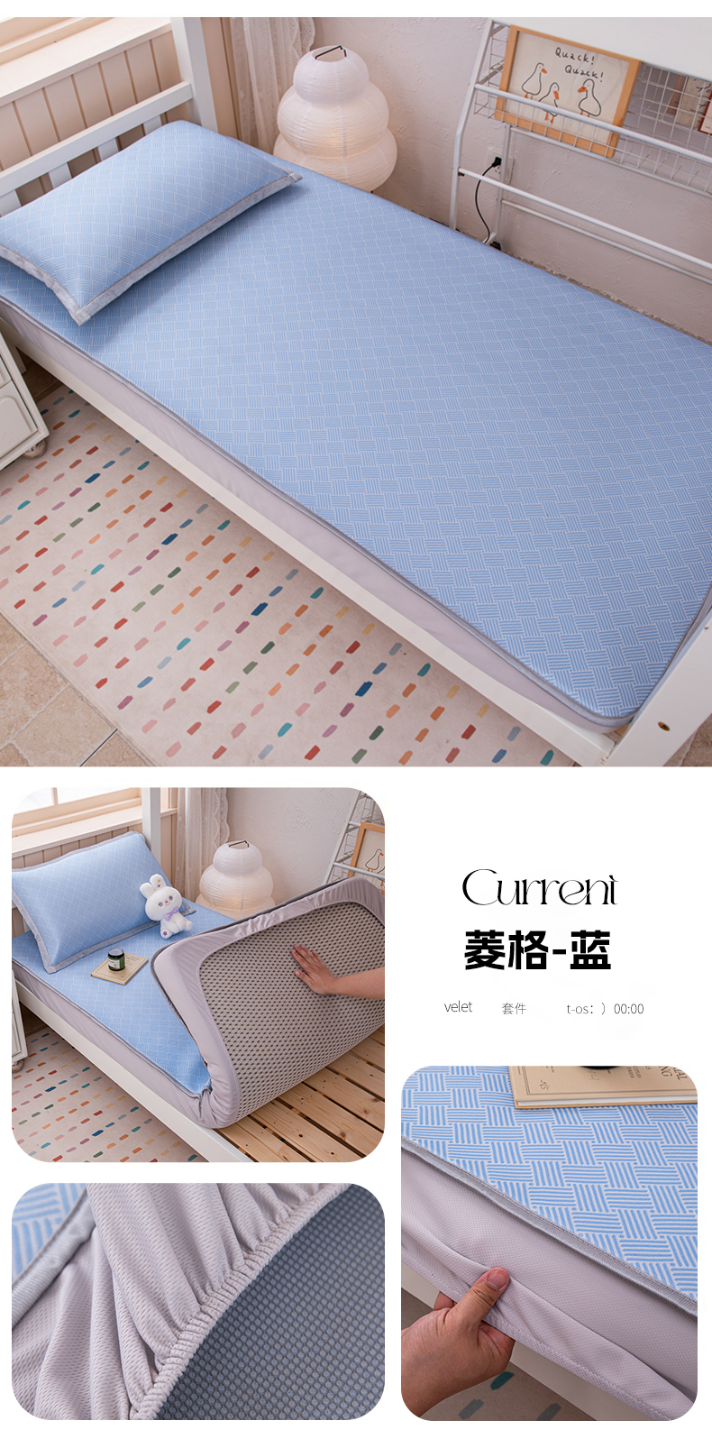 商品名称:凌云家纺 2025新款提花凉感冰丝席床笠款三明治凉席三件套 菱格-蓝
